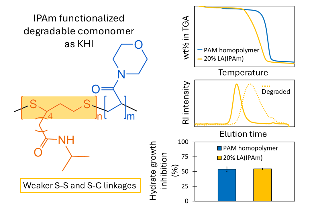 23]. Copolymerization with LA incorporates disulfide bonds into the carbon backbone, and these are degradable under mild conditions. Various acrylamides possess the characteristics of hydrate inhibitors [