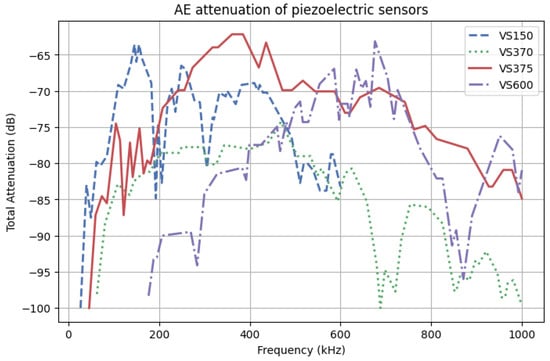 Attenuation characteristics of piezoelectric sensors based on the certificates provided by the manufacturer.
