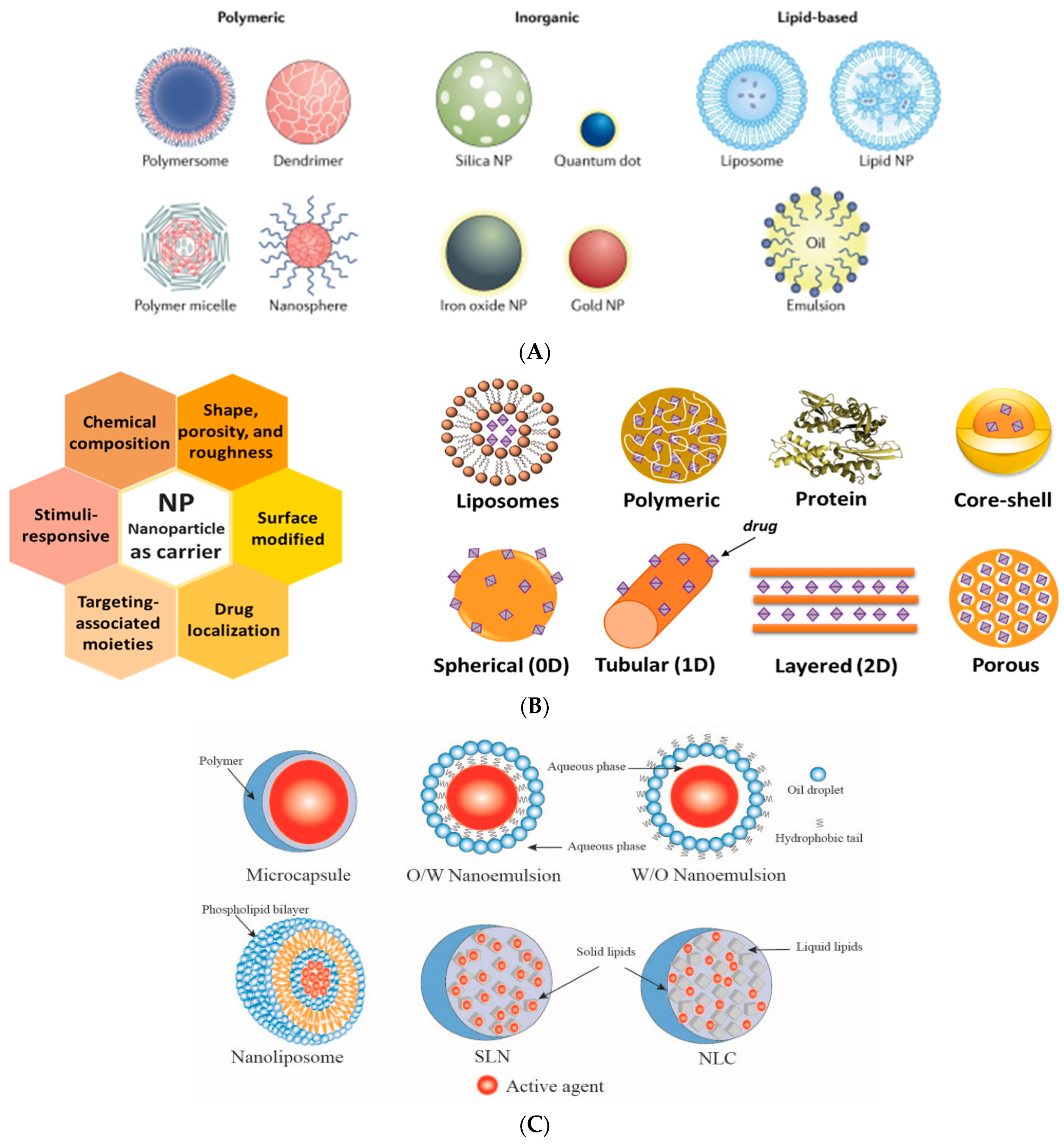 The aim of this review is to provide some new insights and innovative biobased/sustainable solutions resulting from the incorporation of the natural (bio)active additives and/or nanosized compounds as active additives in the development of new polymeric materials. The review is based mainly on the 2022–2025 publications (for both types of additives, and especially for nanosized ones), and it updates information useful for selecting topics and materials suitable as active additives both for applications and also for future research on natural and nanosized additives. It should be useful in (i) precise and sustainable agriculture/farming, emphasizing on integration of nanotech solutions in research and practice or the latest breakthroughs as nano-fertilizers and nano-pesticides, with advanced nano-sensors; (ii) impact of nanotechnology in food preservation and packaging, environmental sustainability through nanotechnology innovations to extend food shelf life and safety, also in (iii) biomedicine to treat some diseases, (iv) in cosmetics, a.s.o. One of the recent important research/scale-up directions is based on detailed composition–activities relationships of the BACs, which led to the discovery of new components/compositions/activities [36,37,38]; that is why the review starts with the presentation of the main classes of the natural and nanoscale BAC types/components. As sources of BAC and biopolymers are mentioned, especially by-products, residual materials, and waste from various sectors to be processed and valorized by new efficient and sustainable processes (emulsification, encapsulation, complexation), green syntheses of different nanoparticles (NPs), etc. The recent considerations on the mechanisms of antimicrobial, antifungal, antioxidant activities, controlled/targeting release of (bio)active agents, their detailed characterization by analytical methods, toxicological issues, degradation behavior and recent developments on the applications of the active (bioactive) natural additives/ingredients and active NPs in various sectors are only mentioned in each section (these applications will be the topic of the second part of this review).