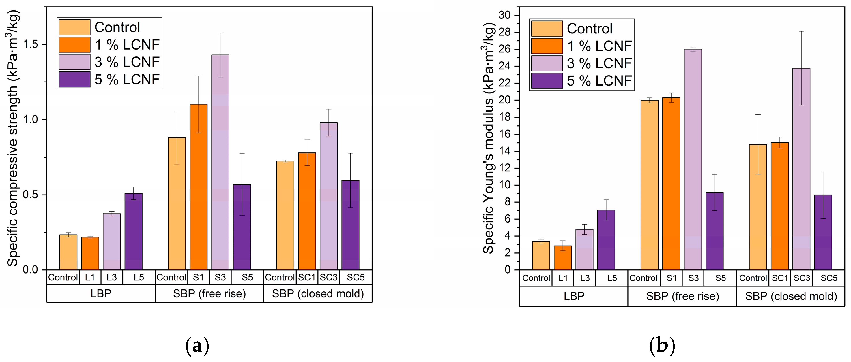 - Bello, K.O.; Yan, N. Mechanical and Insulation Performance of Rigid Polyurethane Foam Reinforced with Lignin-Containing Nanocellulose Fibrils. Polymers 2024, 16, 2119. [Google Scholar] [CrossRef]