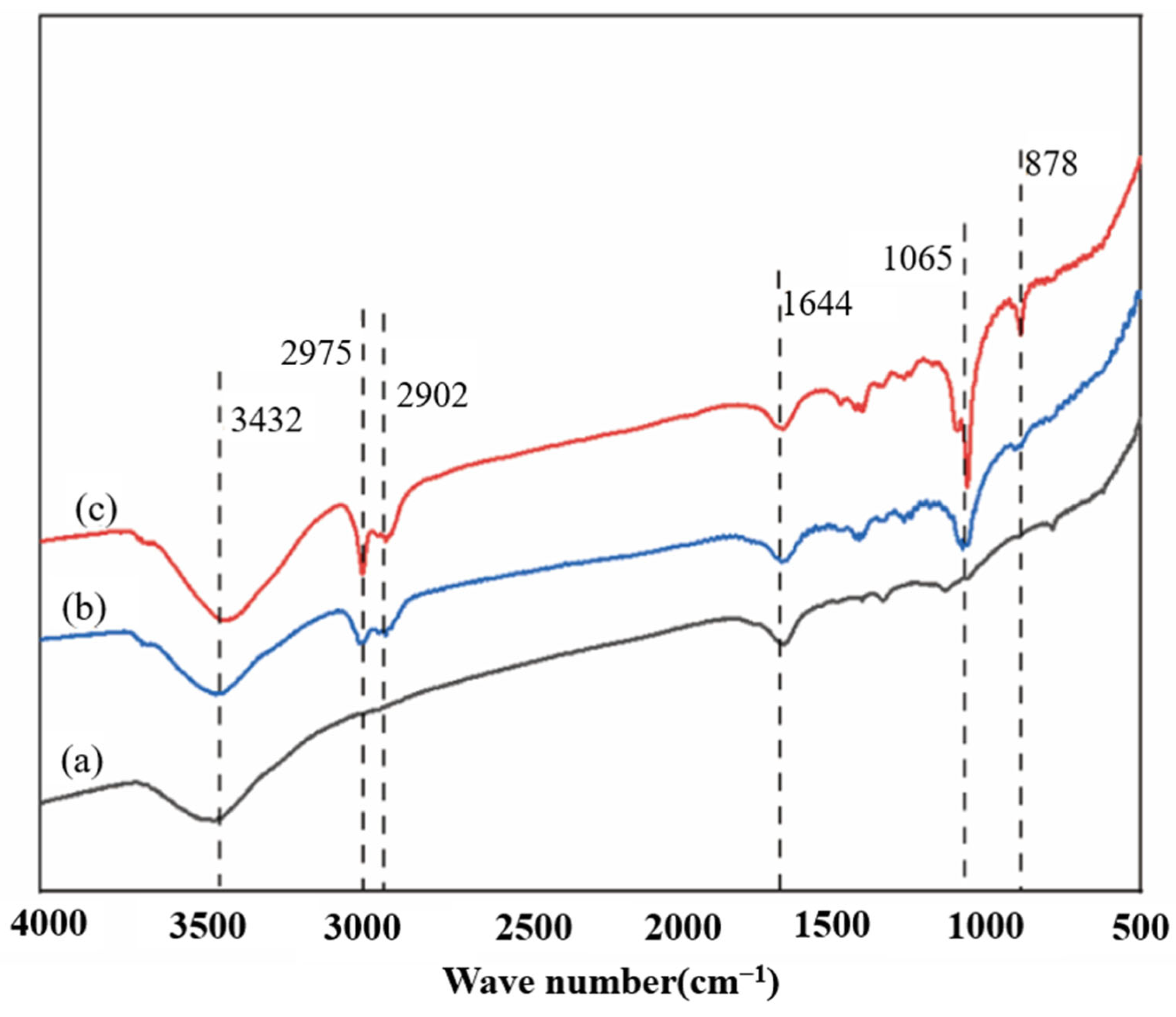 To further study the changes in the chemical structure of corn stover before and after water washing, FT-IR analysis was carried out on the unwashed corn stover after explosion within the range of 4000–500 cm