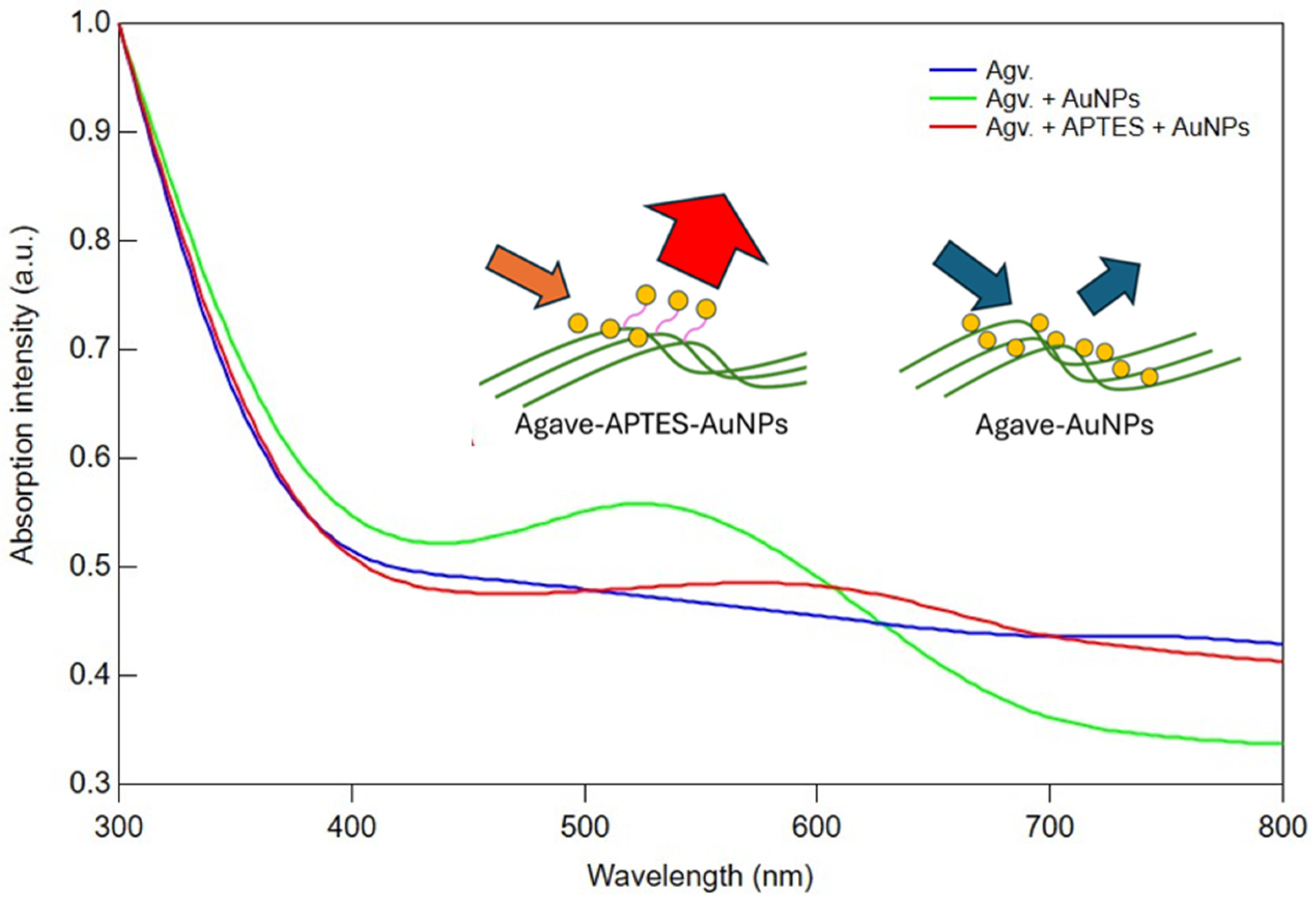 | Agv. + AuNPs | −362 | −227 | Strongly negative surface charge resulting from citrate-stabilized AuNPs [4,42]. |