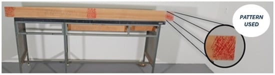 The character of the surface of the measured object is crucial when carrying out measurements. The surface of the measured object must be marked with a pattern so that the pixels in the camera image can be clearly assigned. The pattern we chose consisted of a network of random lines and dots (Figure 5). We applied this pattern to all samples on both edges and the center of the board as well.