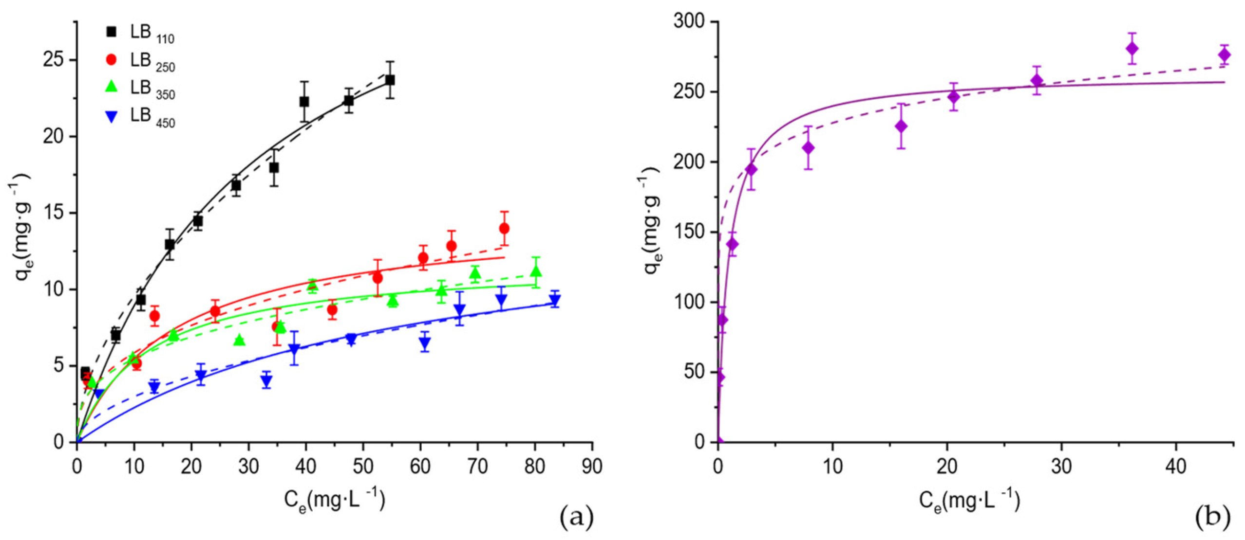 - Pereira, L.H.; Boas, E.C.V.; Ferreira, O.P.; Avelino, F. Development of Kraft Lignin-Based Biochars for Adsorption of Ciprofloxacin: Insights about the Effects of Activation on the Adsorption Mechanism. Int. J. Biol. Macromol. 2025, 329, 147845. [Google Scholar] [CrossRef]