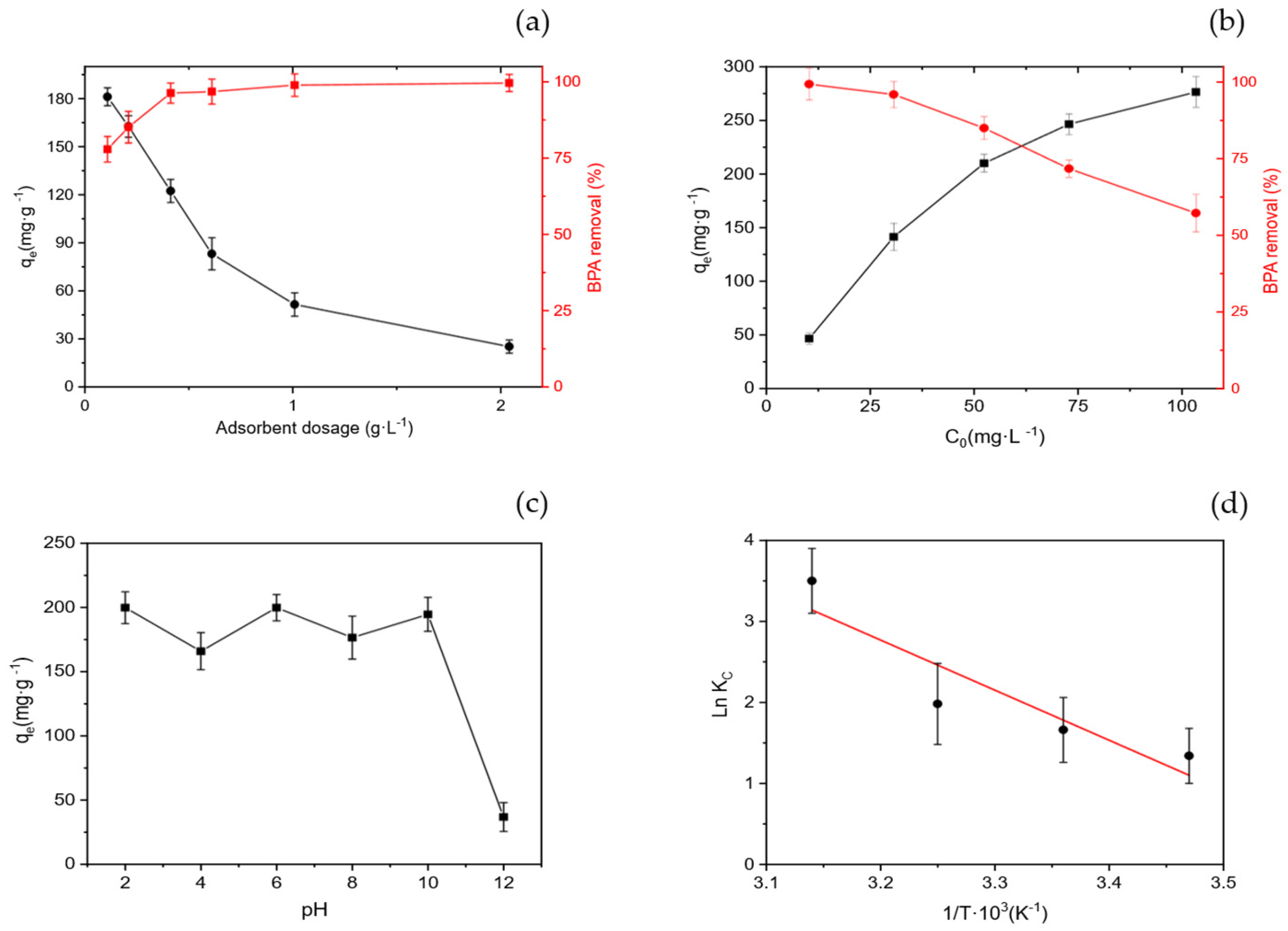 - Wang, J.; Zhang, M. Adsorption Characteristics and Mechanism of Bisphenol A by Magnetic Biochar. Int. J. Environ. Res. Public Health 2020, 17, 1075. [Google Scholar] [CrossRef]