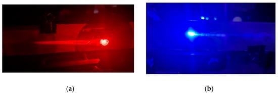 Photographs of the holographic lenses with a recording focal length of 80 mm in air, guiding the corresponding operating wavelength (a) transmission HL with nm and (b) reflection HL with nm.
