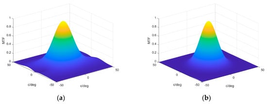 Following this analysis and comparison, the corresponding MTF is presented in Figure 11. In this case, we can estimate the cutoff frequency and compare it with the experimental values obtained and their comparison with the minimum value given by the diffraction limit. The value obtained in Figure 11a for each axis is around 40 cycles/degree, which is half that obtained for asymmetrical lenses recorded in [] with the Biophotopol photopolymer and double that obtained for symmetrical lenses with the same recording material. The MTF form in Figure 11b presented a more symmetrical form and a slightly smaller cutoff frequency, around 35 cycles/degree in both main axes.