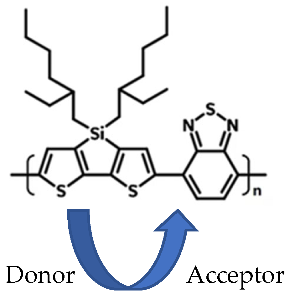 8]. Improvement in overall semiconducting properties such as carrier mobility and bandgap is also a key factor in these types of materials; this has been achieved by preparing polymers with conjugated pi-structures, including alternating donor and acceptor moieties [
