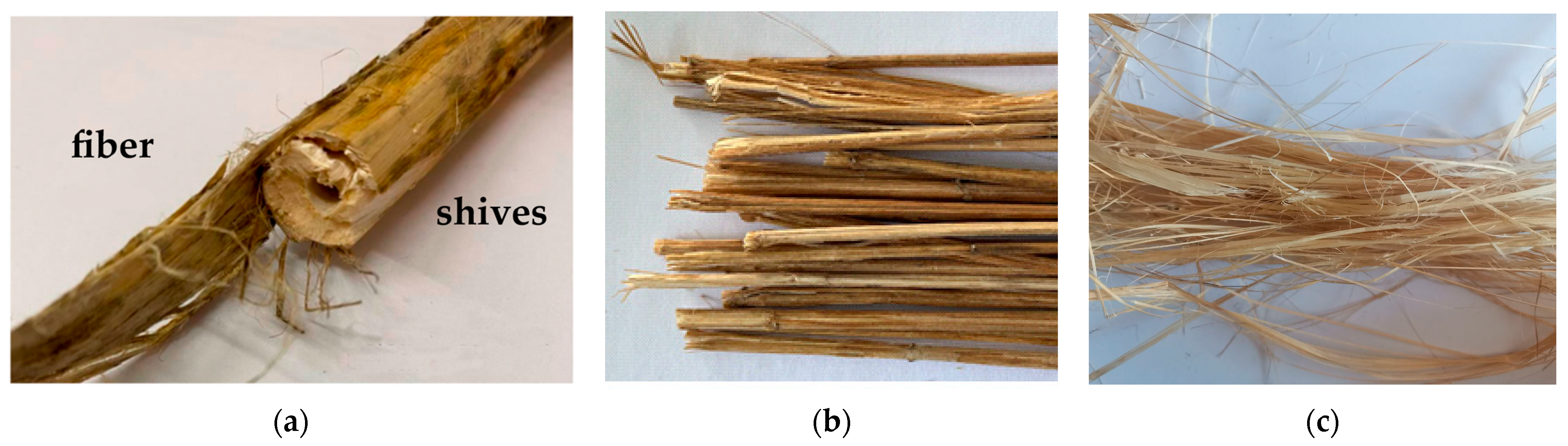 The raw materials used were hemp retted and bast fibers, each 50 mm in length (