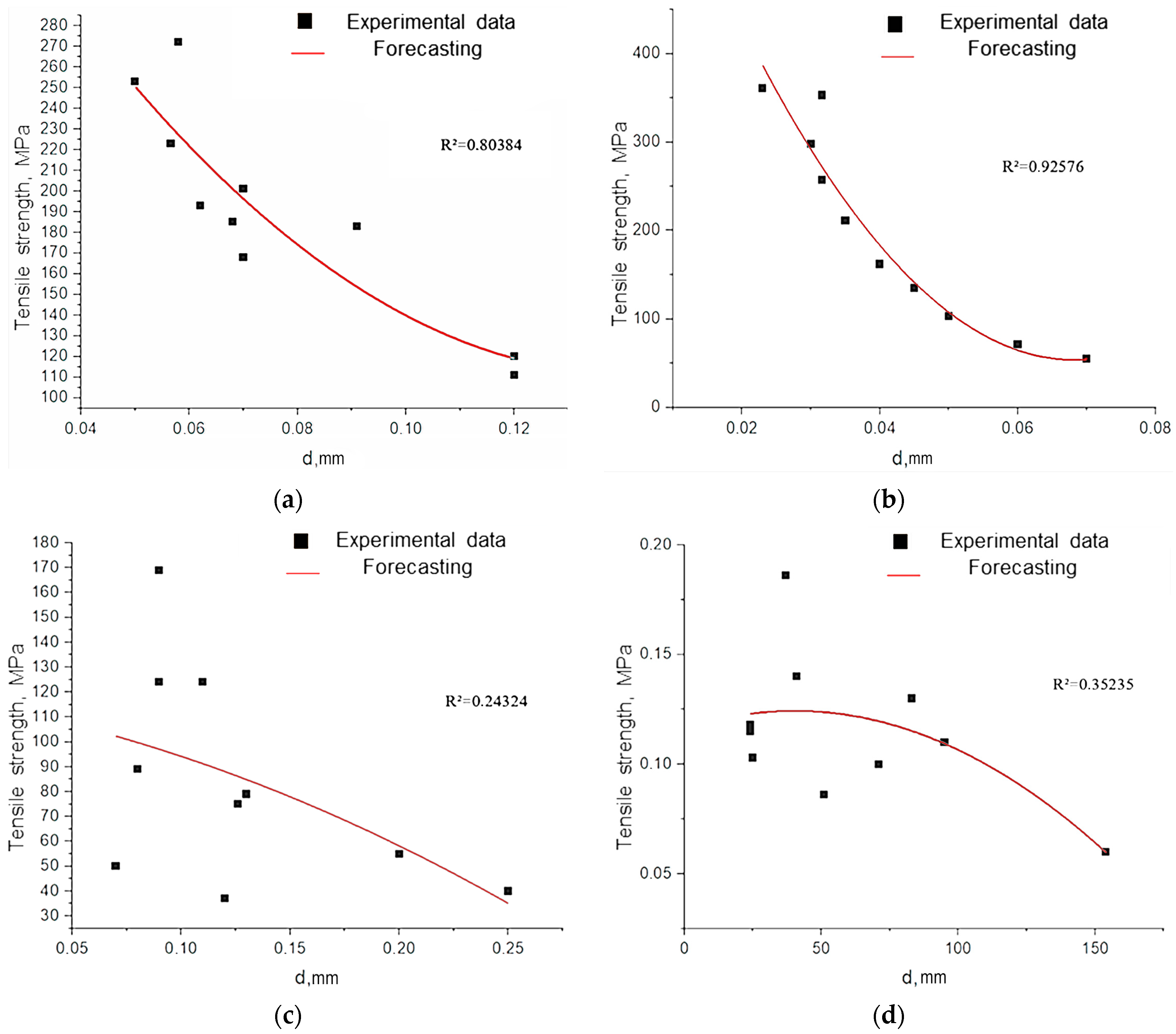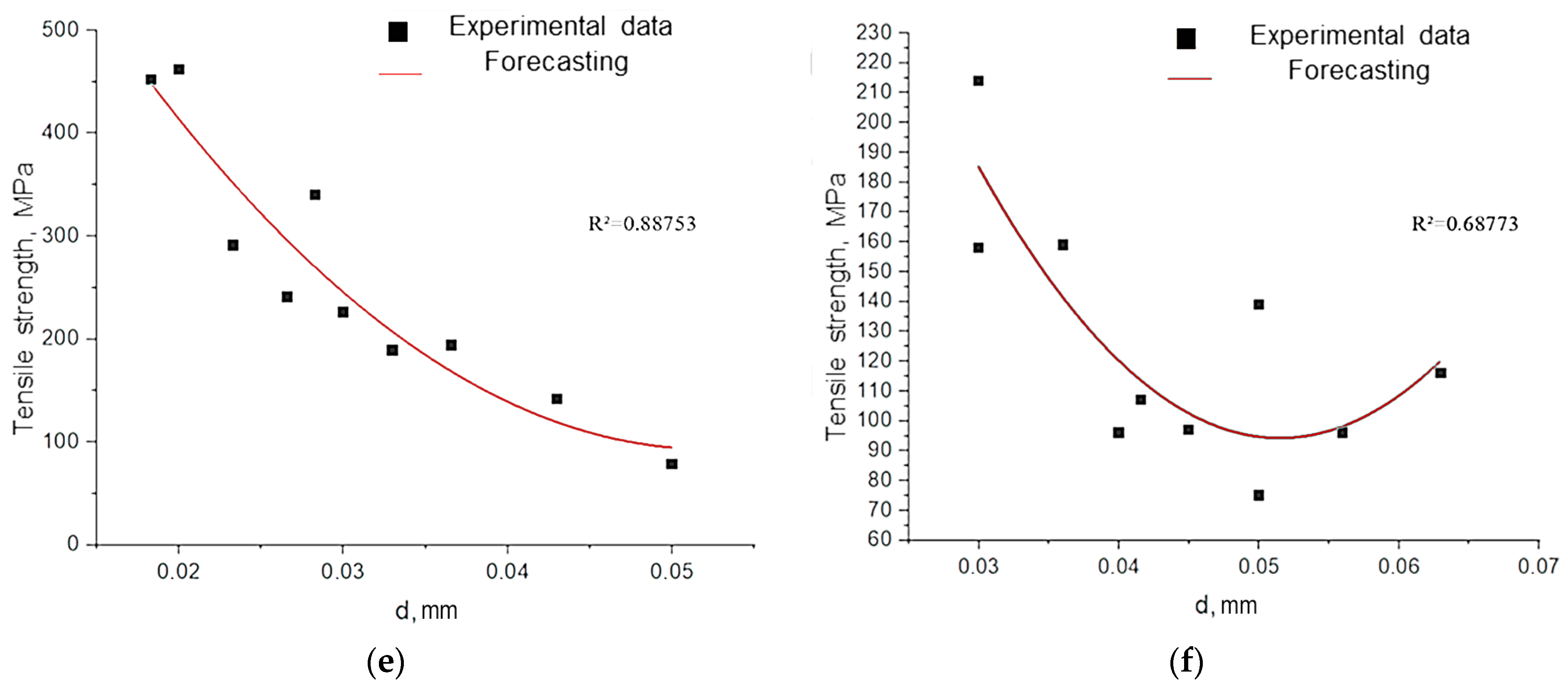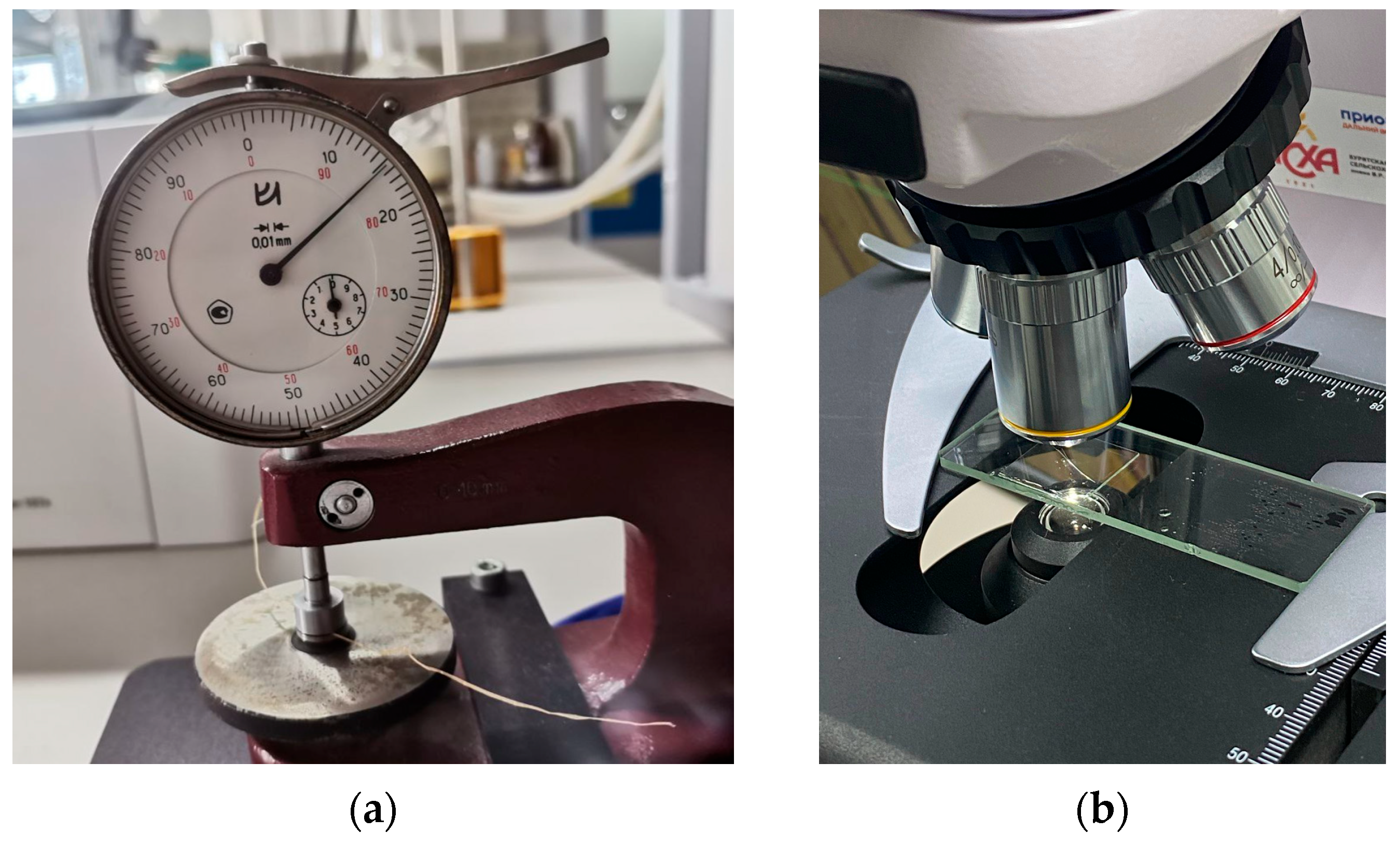 3.1. The Effect of Fiber Diameter on Its Strength Characteristics
