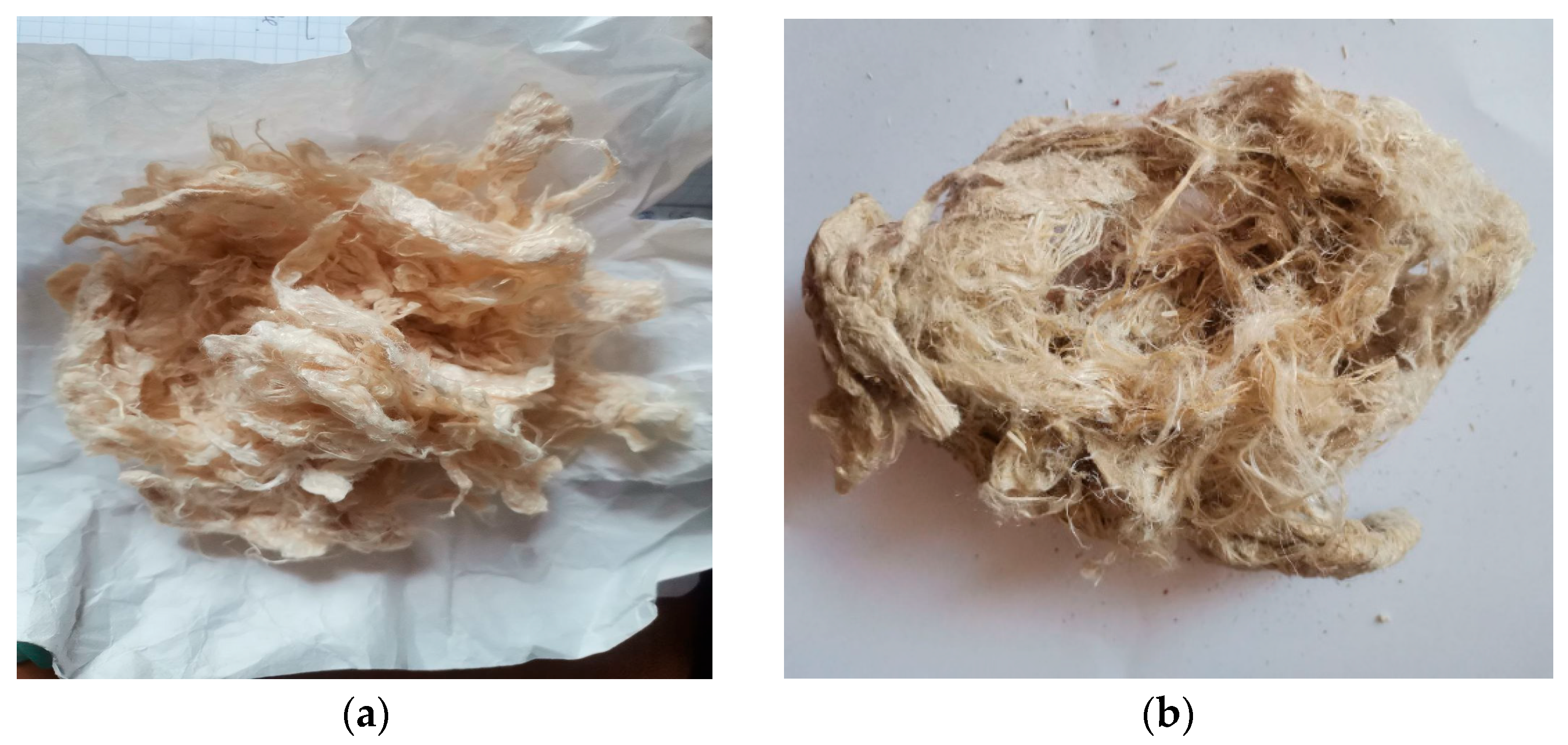 25]. The process of extracting bast fibers from the threshing was carried out using mechanical defibration according to the methodology described in [