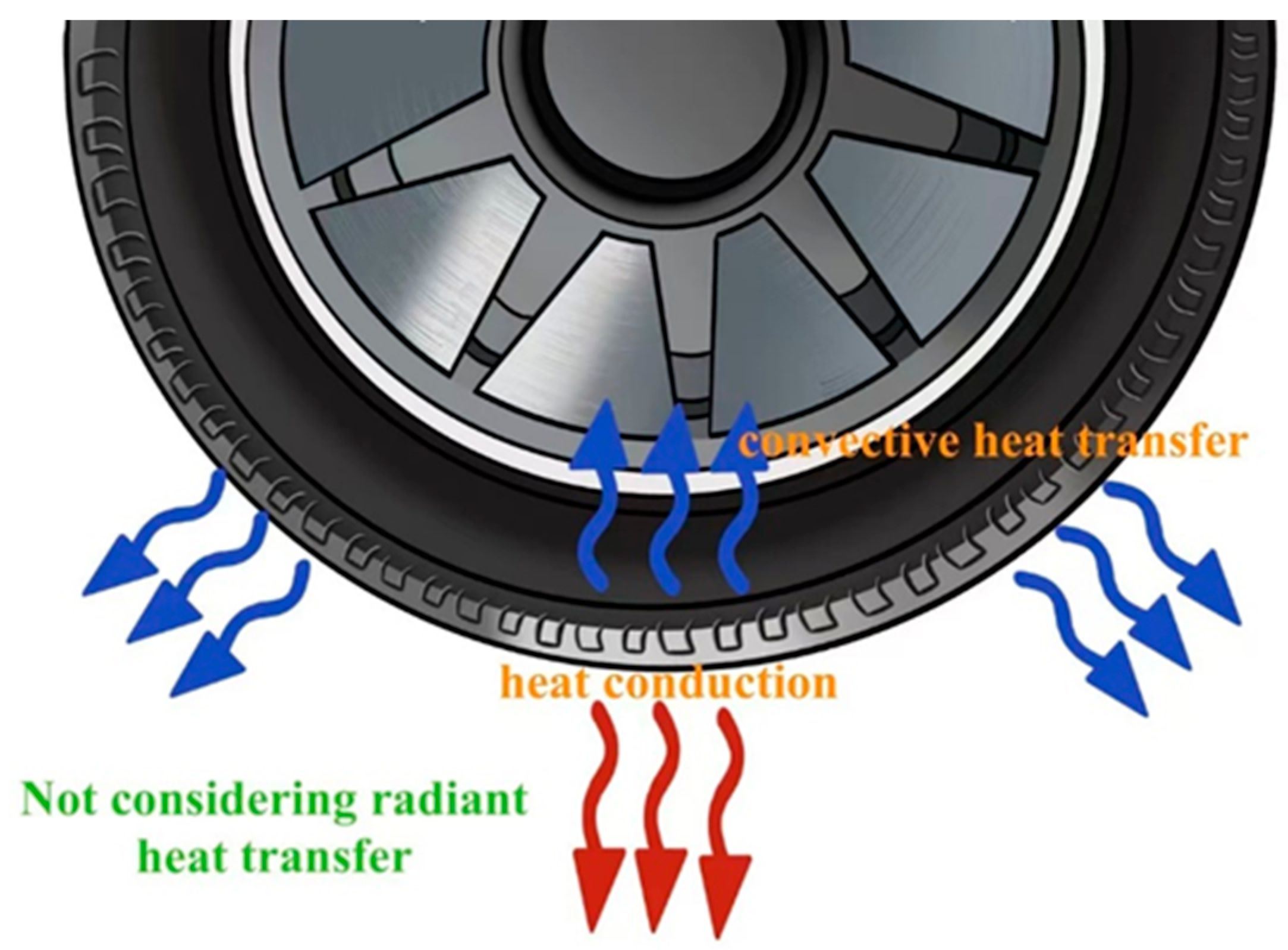 - Tang, T.; Johnson, D.; Smith, R.E.; Felicelli, S.D. Numerical Evaluation of the Temperature Field of Steady-State Rolling Tires. Appl. Math. Model. 2014, 38, 1622–1637. [Google Scholar] [CrossRef]