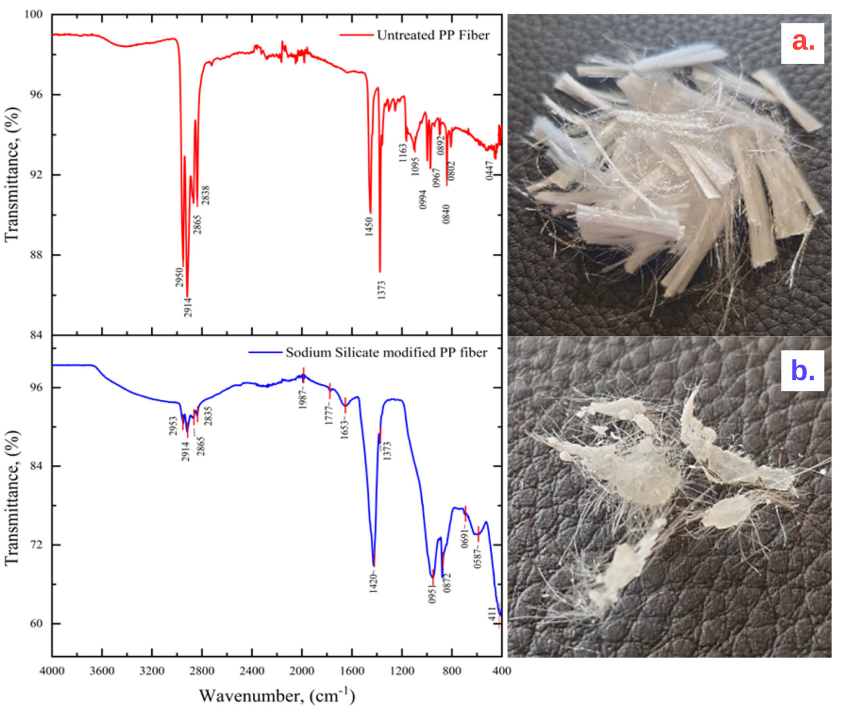- Jia, E.; Mou, H.; Liu, Z.; Wang, J.; Zeng, L.; Yang, X.; Liu, P. Surface Hydrophilic Modification of Polypropylene Fibers and Their Application in Fiber-Reinforced Cement-Based Materials. J. Macromol. Sci. Part B 2020, 60, 286–298. [Google Scholar] [CrossRef]