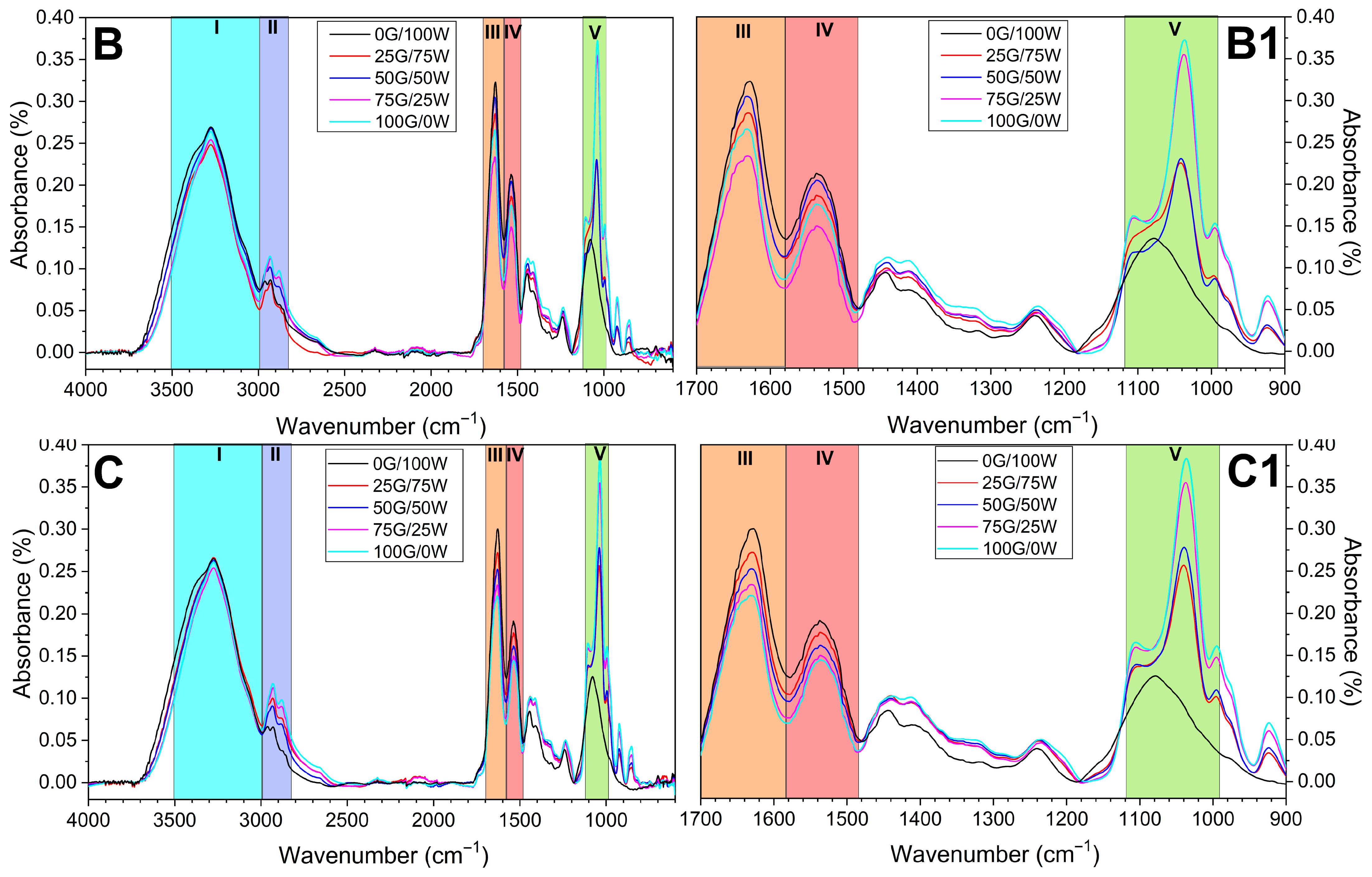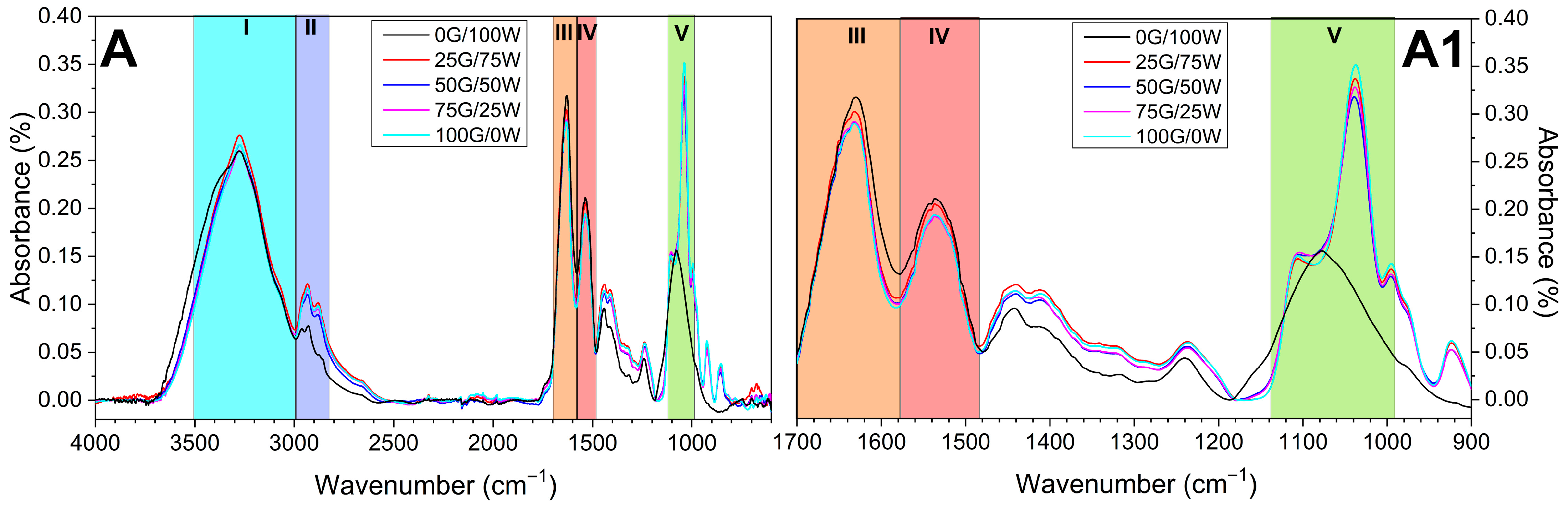 - Yan, Z.; Li, Q.; Zhang, P. Soy Protein Isolate and Glycerol Hydrogen Bonding Using Two-Dimensional Correlation (2D-COS) Attenuated Total Reflection Fourier Transform Infrared (ATR FT-IR) Spectroscopy. Appl. Spectrosc. 2017, 71, 2437–2445. [Google Scholar] [CrossRef]