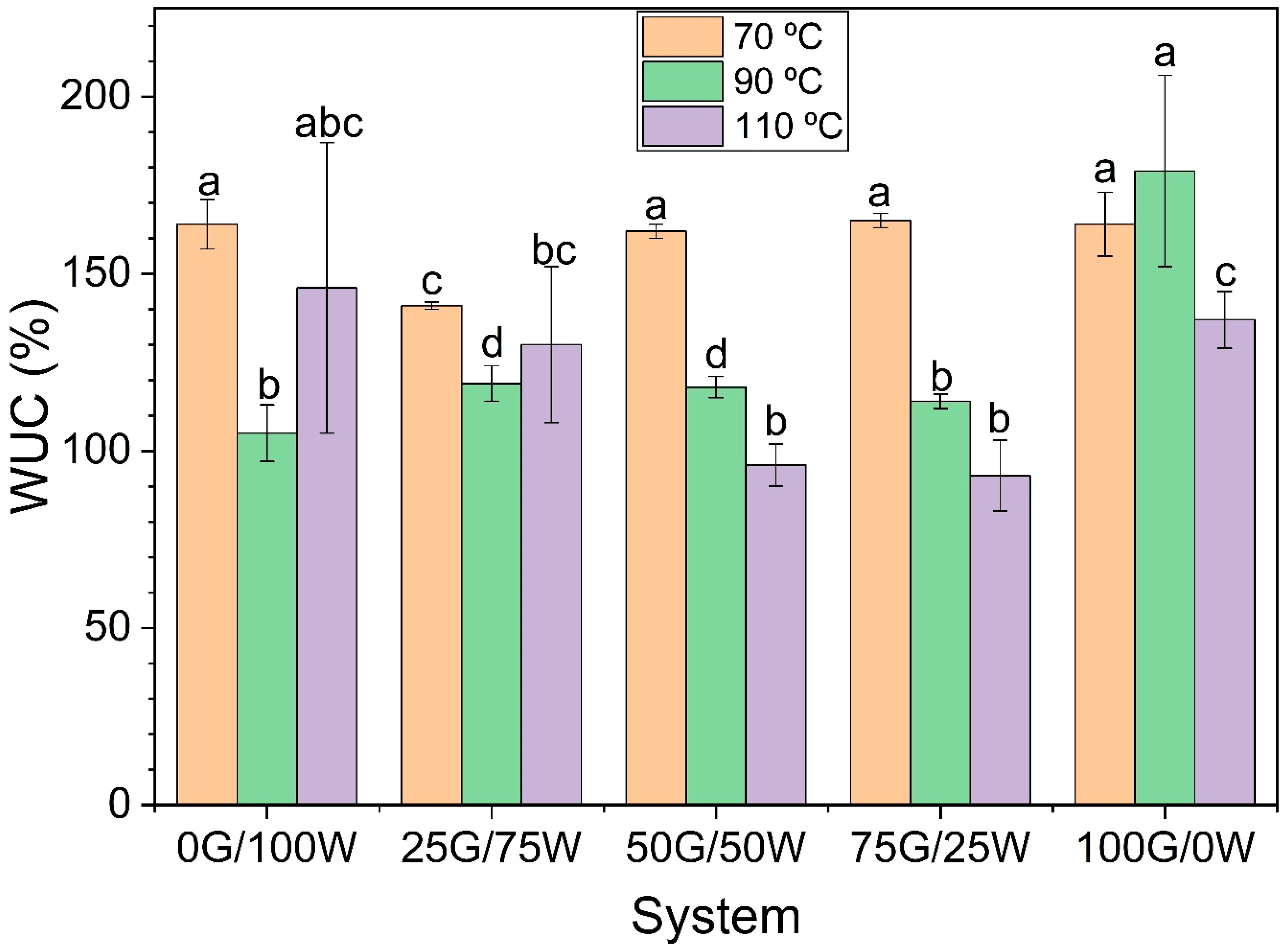 2.4.4. Water Uptake Capacity (WUC)