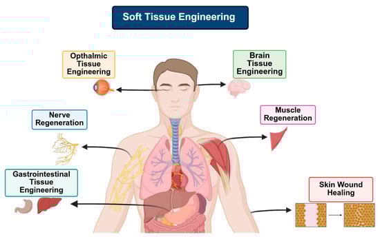 An overview of frequently engineered soft tissue subtypes. Created in BioRender. Choonara, Y. (2025). https://BioRender.com/58aebki Accessed on 3 November 2025.