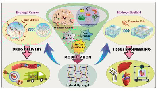 - Rana, M.M.; De la Hoz Siegler, H. Evolution of hybrid hydrogels: Next-generation biomaterials for drug delivery and tissue engineering. Gels 2024, 10, 216. [Google Scholar] [CrossRef]