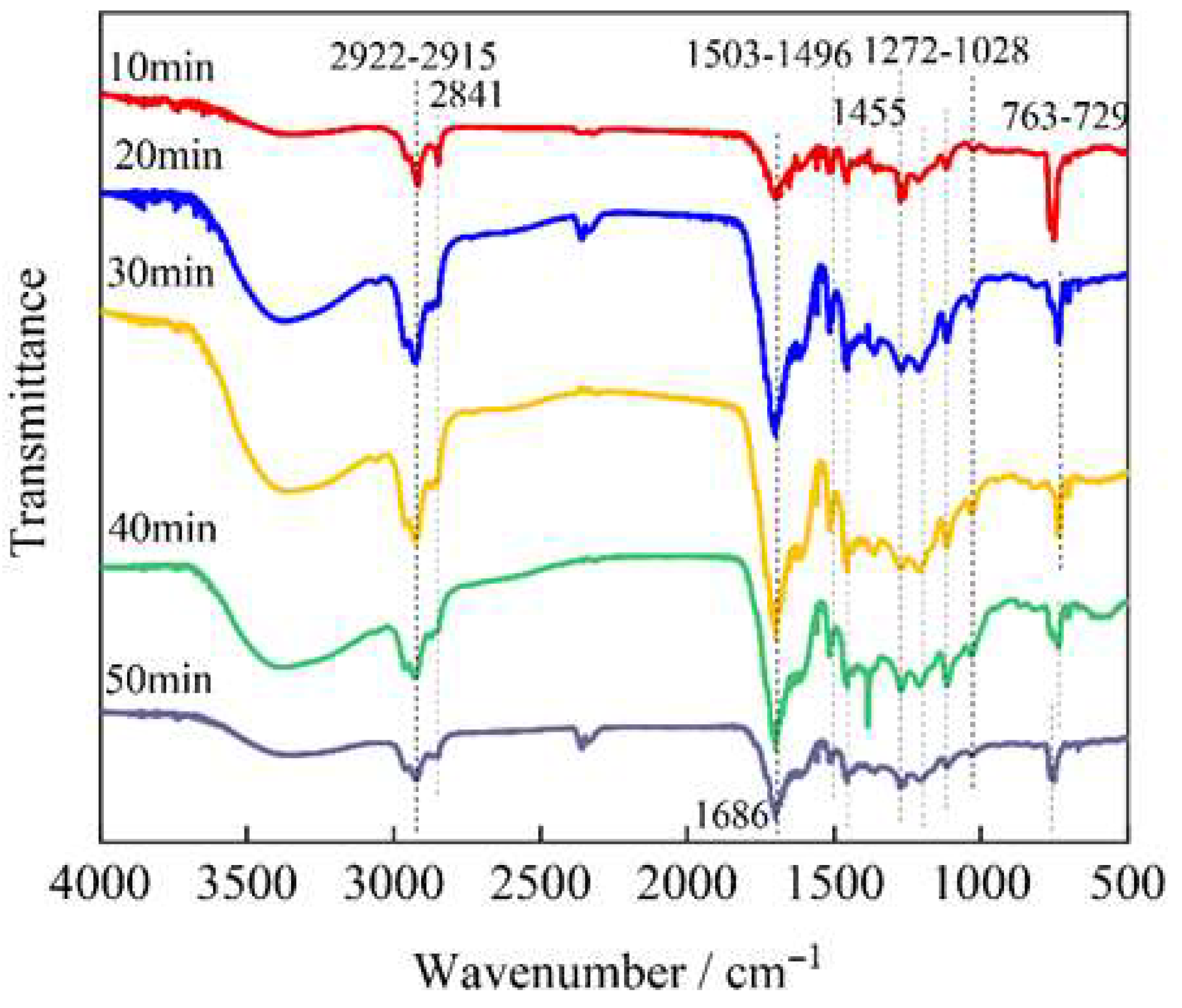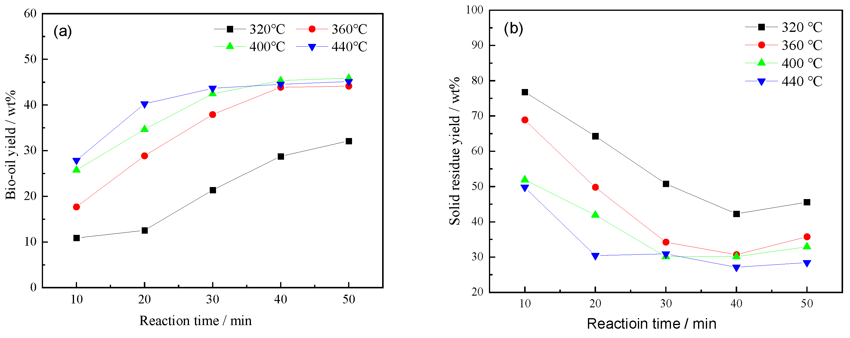 3.1. Effect of Temperature and Time on the Bio-Oil Yield