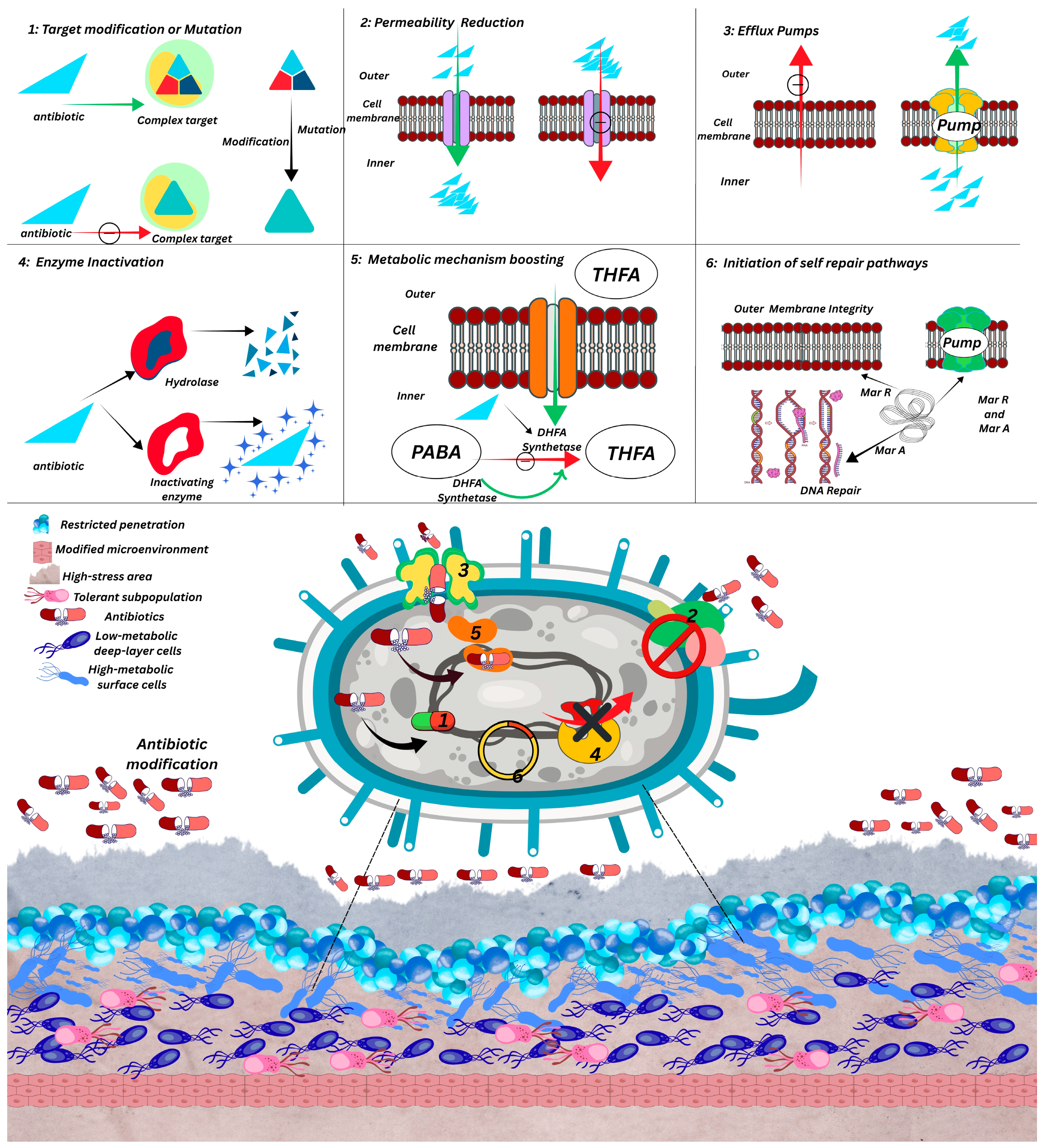 - Zhang, F.; Cheng, W. The Mechanism of Bacterial Resistance and Potential Bacteriostatic Strategies. Antibiotics 2022, 11, 1215. [Google Scholar] [CrossRef]