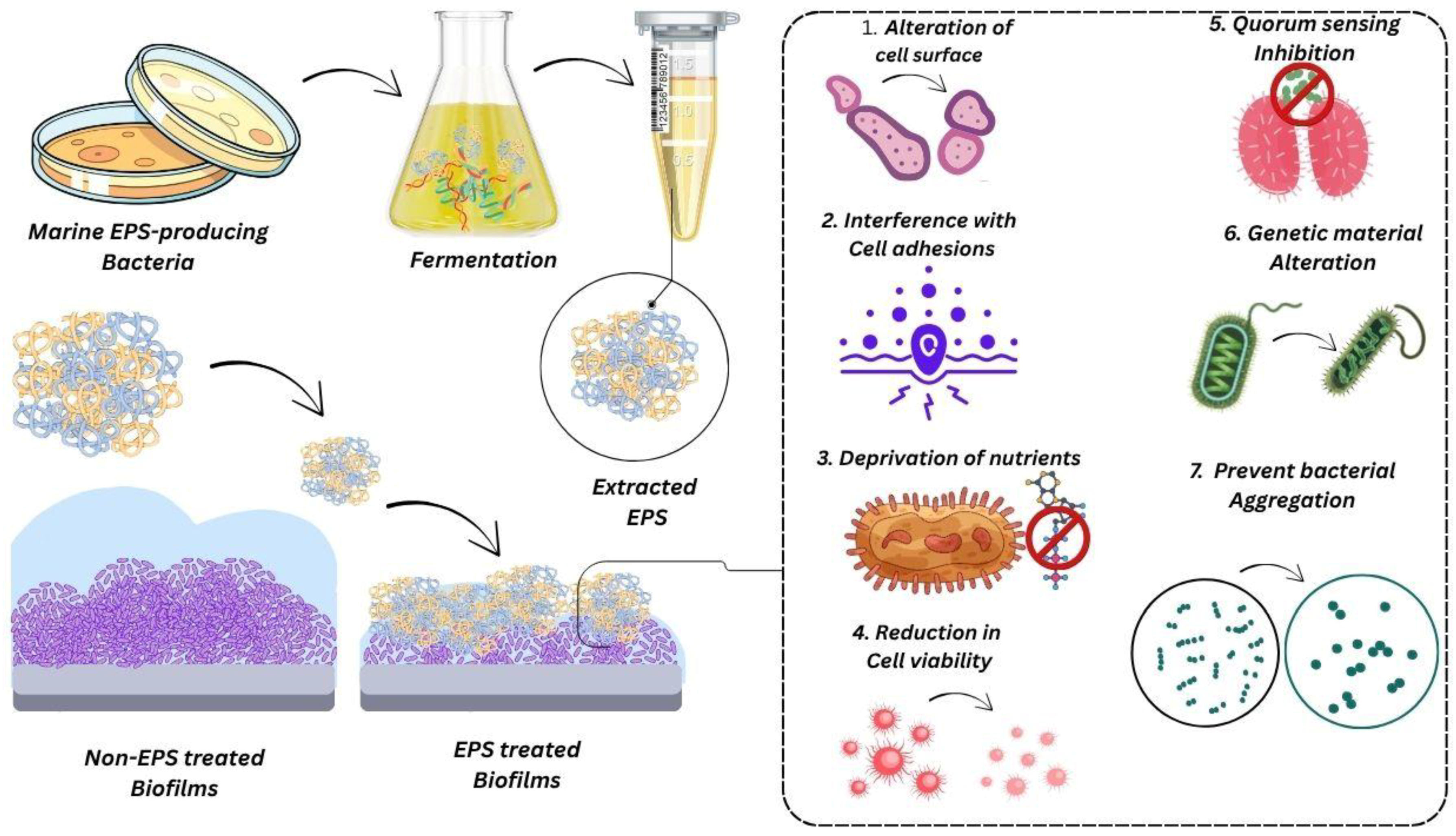 5. Mechanisms of Antibacterial and Antibiofilm Activity of Marine EPS