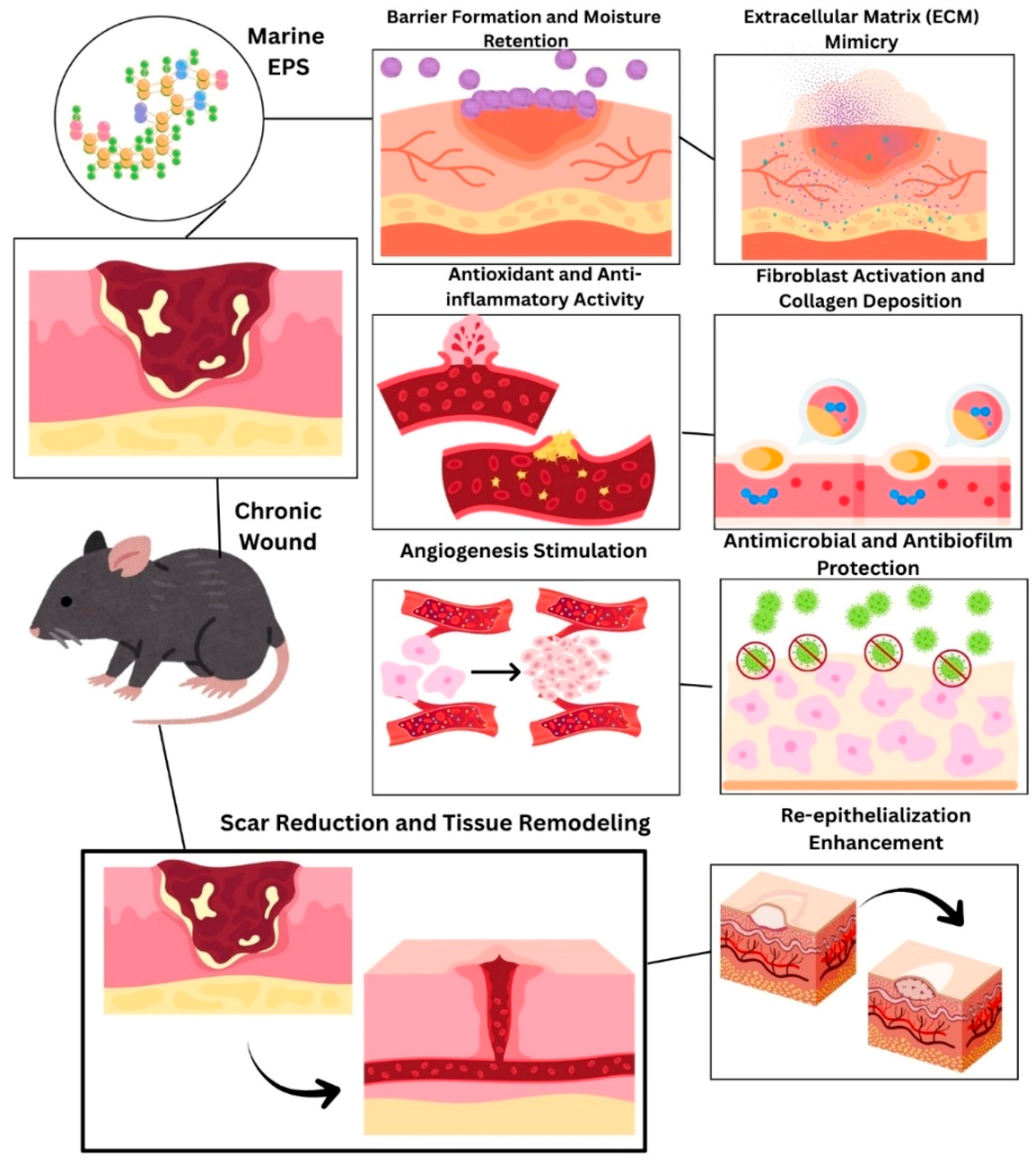 - Sun, M.-L.; Zhao, F.; Chen, X.-L.; Zhang, X.-Y.; Zhang, Y.-Z.; Song, X.-Y.; Sun, C.-Y.; Yang, J. Promotion of Wound Healing and Prevention of Frostbite Injury in Rat Skin by Exopolysaccharide from the Arctic Marine Bacterium Polaribacter sp. SM1127. Mar. Drugs 2020, 18, 48. [Google Scholar] [CrossRef] [PubMed]