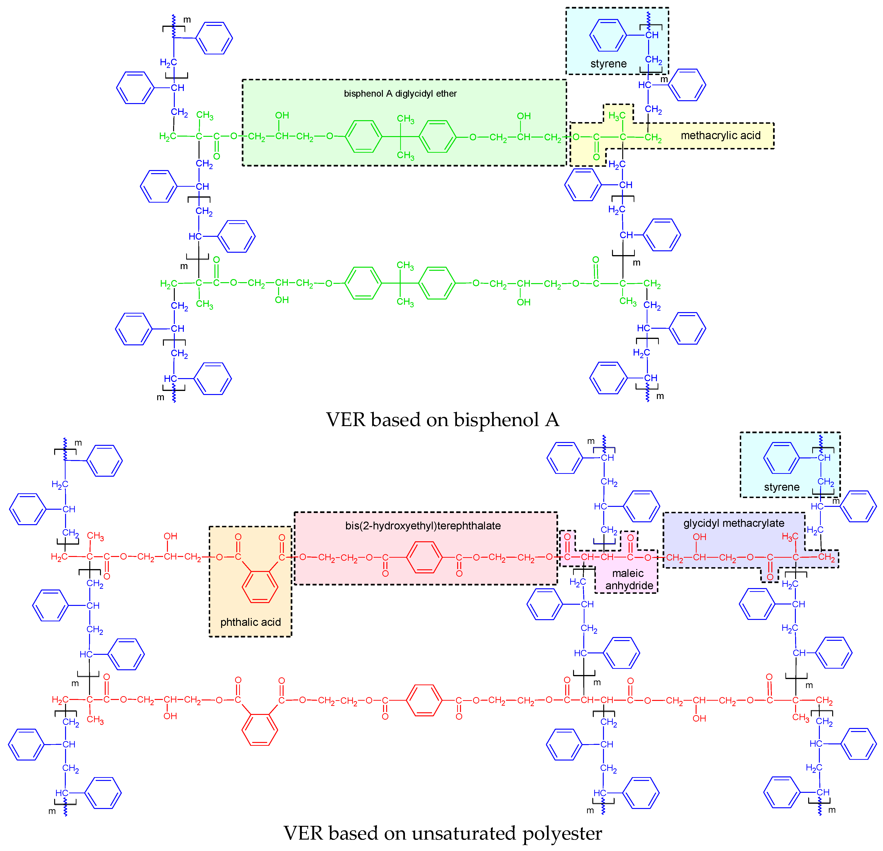 The schematic synthesis of vinyl ester resins is presented in
