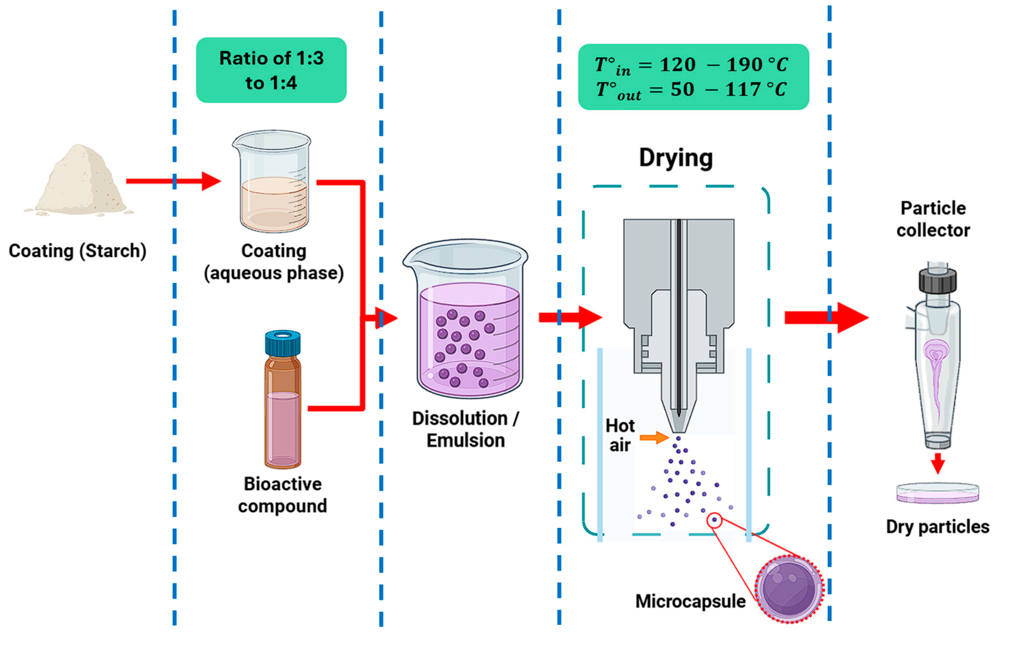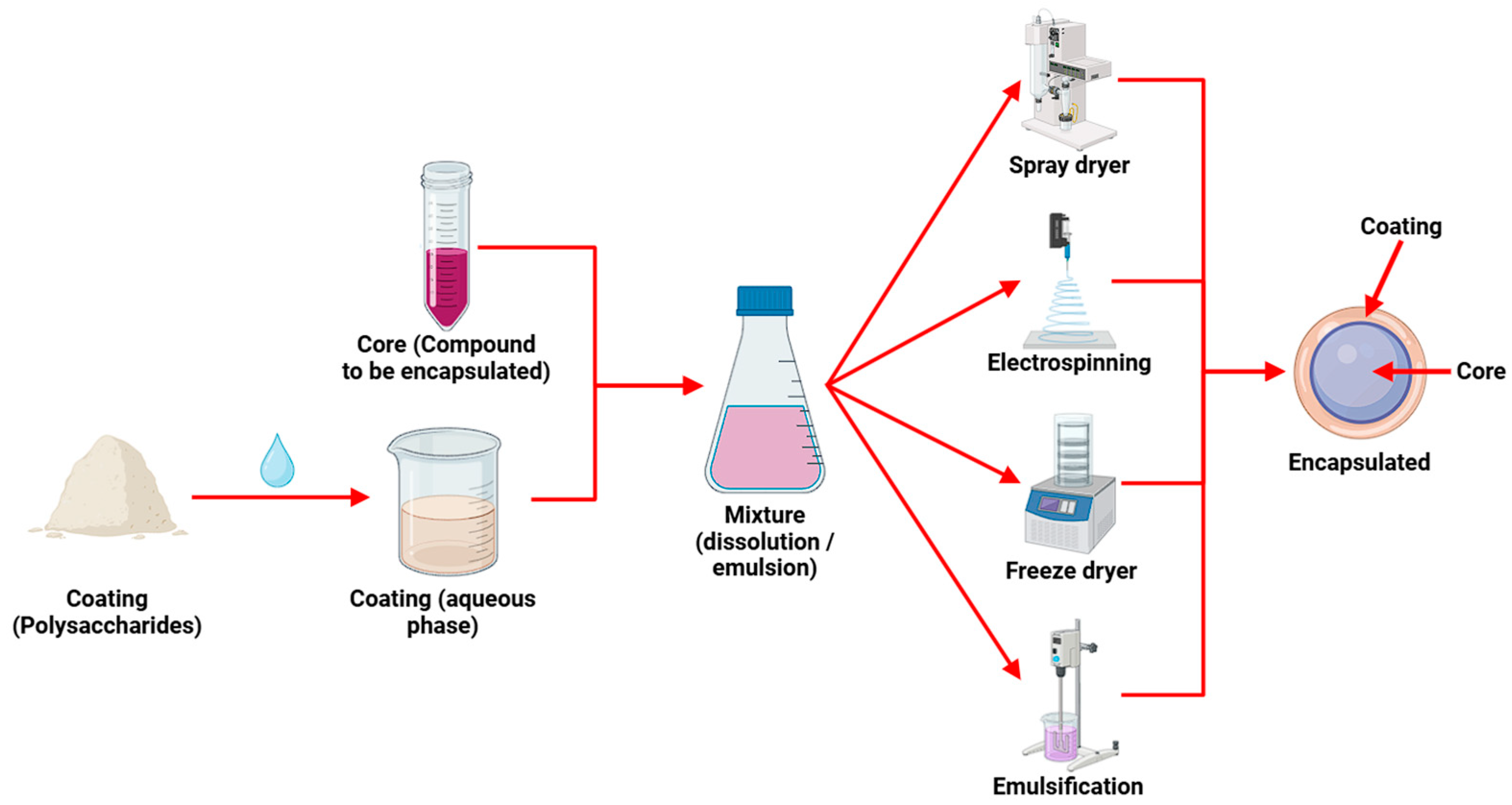 - Xu, Y.; Yan, X.; Zheng, H.; Li, J.; Wu, X.; Xu, J.; Zhen, Z.; Du, C. The application of encapsulation technology in the food Industry: Classifications, recent Advances, and perspectives. Food Chem. X 2024, 21, 101240. [Google Scholar] [CrossRef]