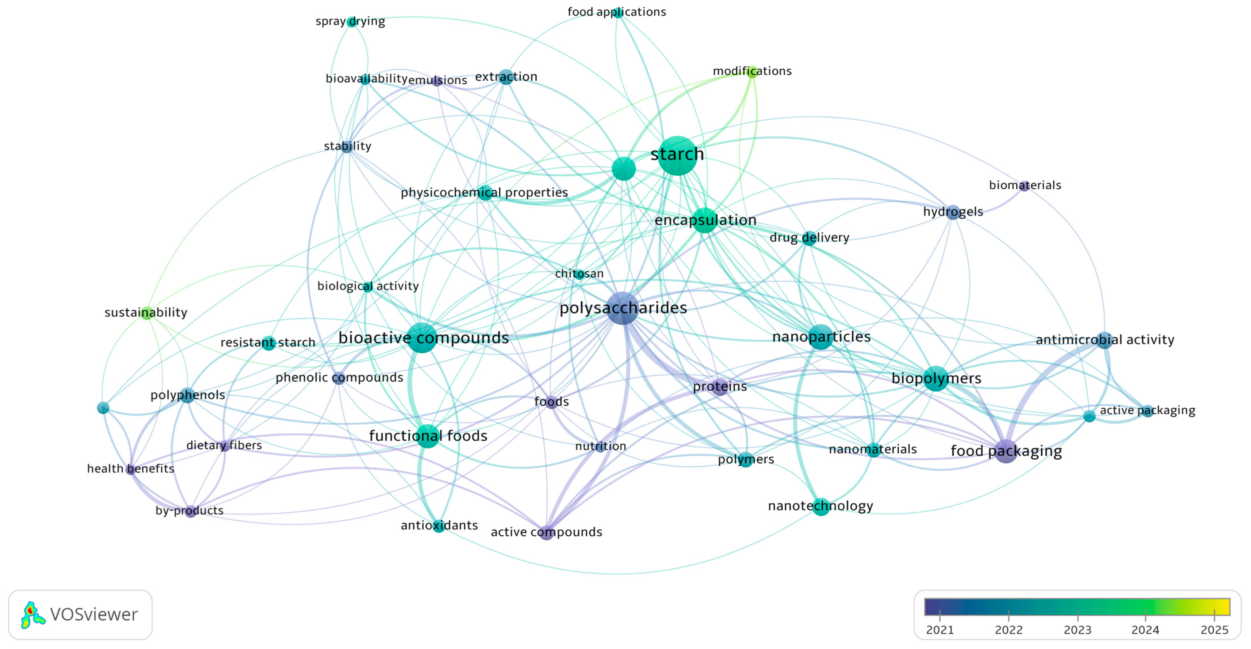 - Montoya-Yepes, D.F.; Jiménez-Rodríguez, A.A.; Aldana-Porras, A.E.; Velásquez-Holguin, L.F.; Méndez-Arteaga, J.J.; Murillo-Arango, W. Starches in the encapsulation of plant active ingredients: State of the art and research trends. Polym. Bull. 2024, 81, 135–163. [Google Scholar] [CrossRef]