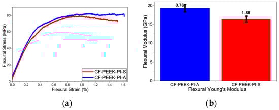 Flexural (a) and Flexural Modulus (b) Curves for CF-PEEK-PI Composites.
