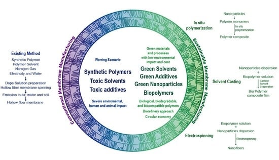 - Bhalani, D.V.; Nutan, B.; Singh Chandel, A.K. Sustainable Development of Membranes. In Encyclopedia of Green Materials; Springer: Singapore, 2022; pp. 1–9. [Google Scholar] [CrossRef]