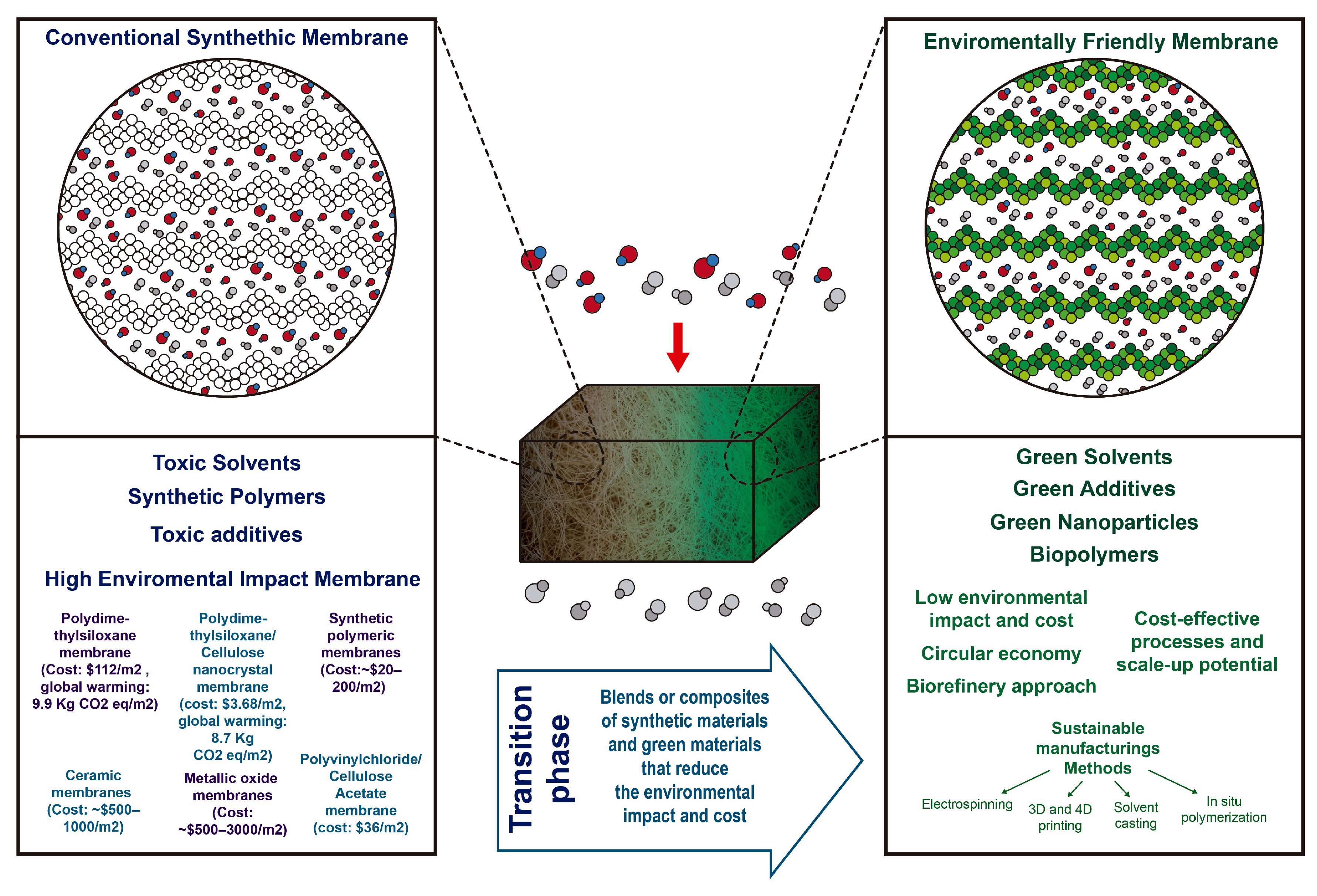 - Rabiee, N.; Sharma, R.; Foorginezhad, S.; Jouyandeh, M.; Asadnia, M.; Rabiee, M.; Akhavan, O.; Lima, E.C.; Formela, K.; Ashrafizadeh, M.; et al. Green and Sustainable Membranes: A review. Environ. Res. 2023, 231, 116133. [Google Scholar] [CrossRef]