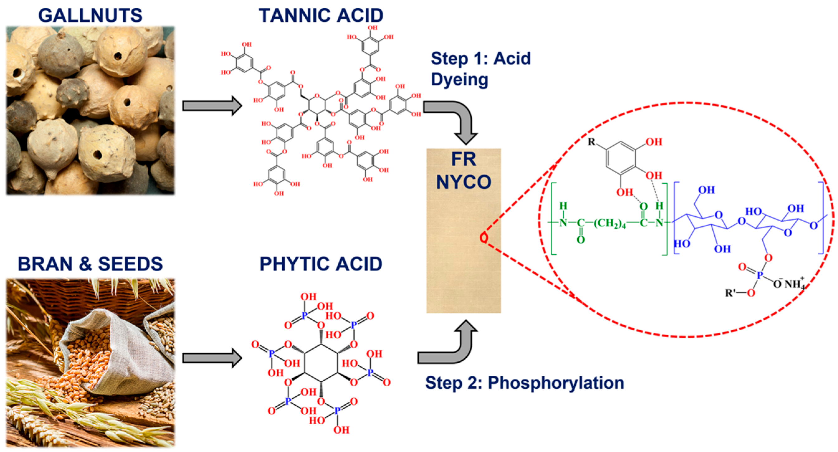 - Cheng, X.; Shi, L.; Fan, Z.; Yu, Y.; Liu, R. Bio-based coating of phytic acid, chitosan, and biochar for flame-retardant cotton fabrics. Polym. Degrad. Stab. 2022, 199, 109898. [Google Scholar] [CrossRef]