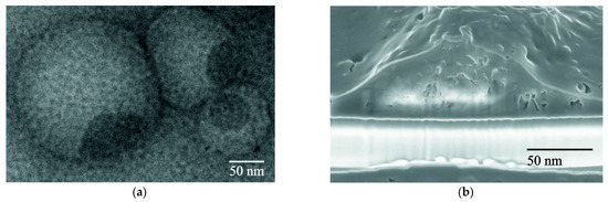 In a number of previous studies [48,49,50], we demonstrated the formation of vesicular LS structures in mixed water–organic media. Figure 5a,b show the general appearance of spontaneously formed LS associates.