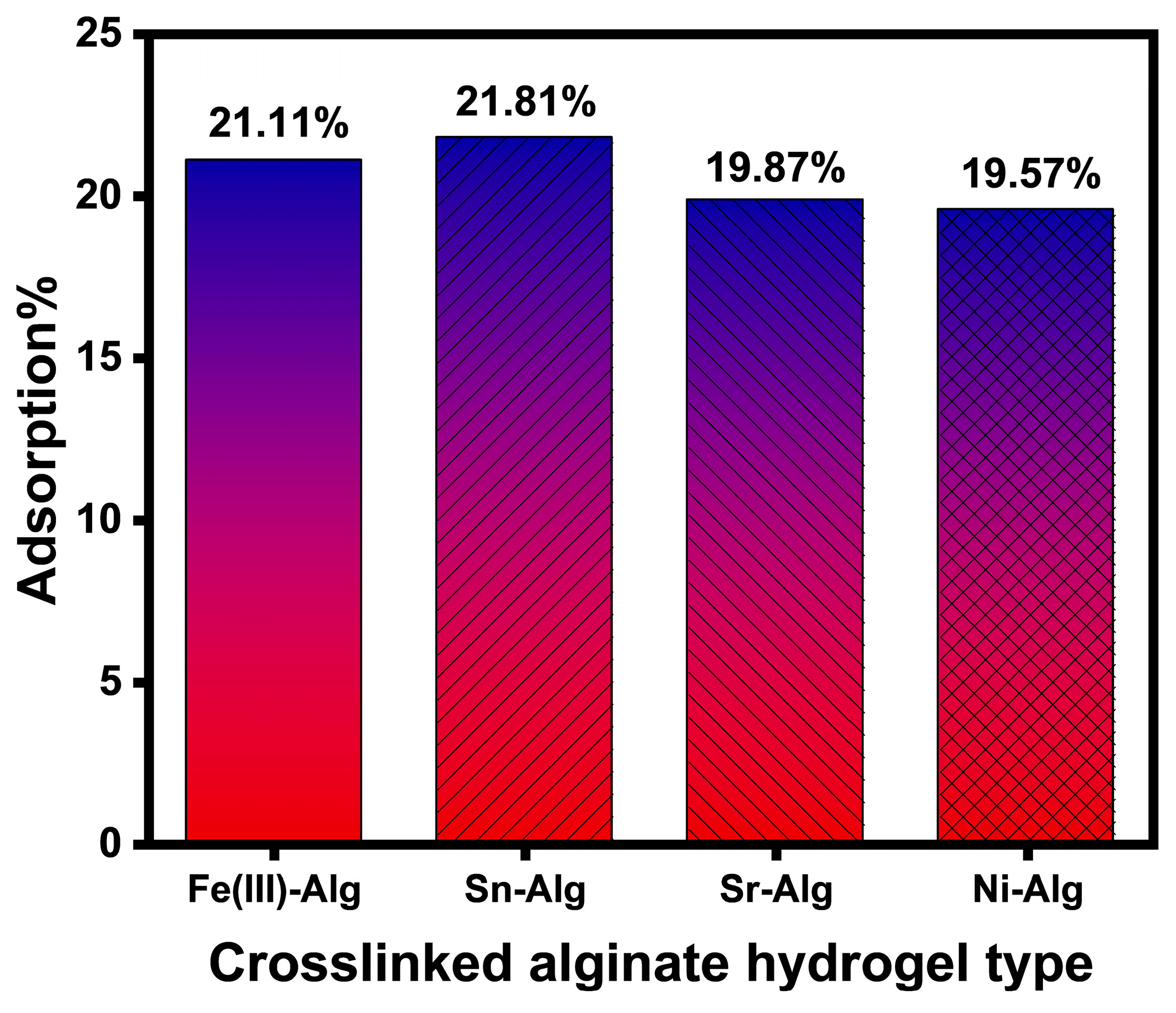 Figure 3. The adsorption percentage of doxorubicin hydrochloride by each type of crosslinked sodium alginate hydrogel.