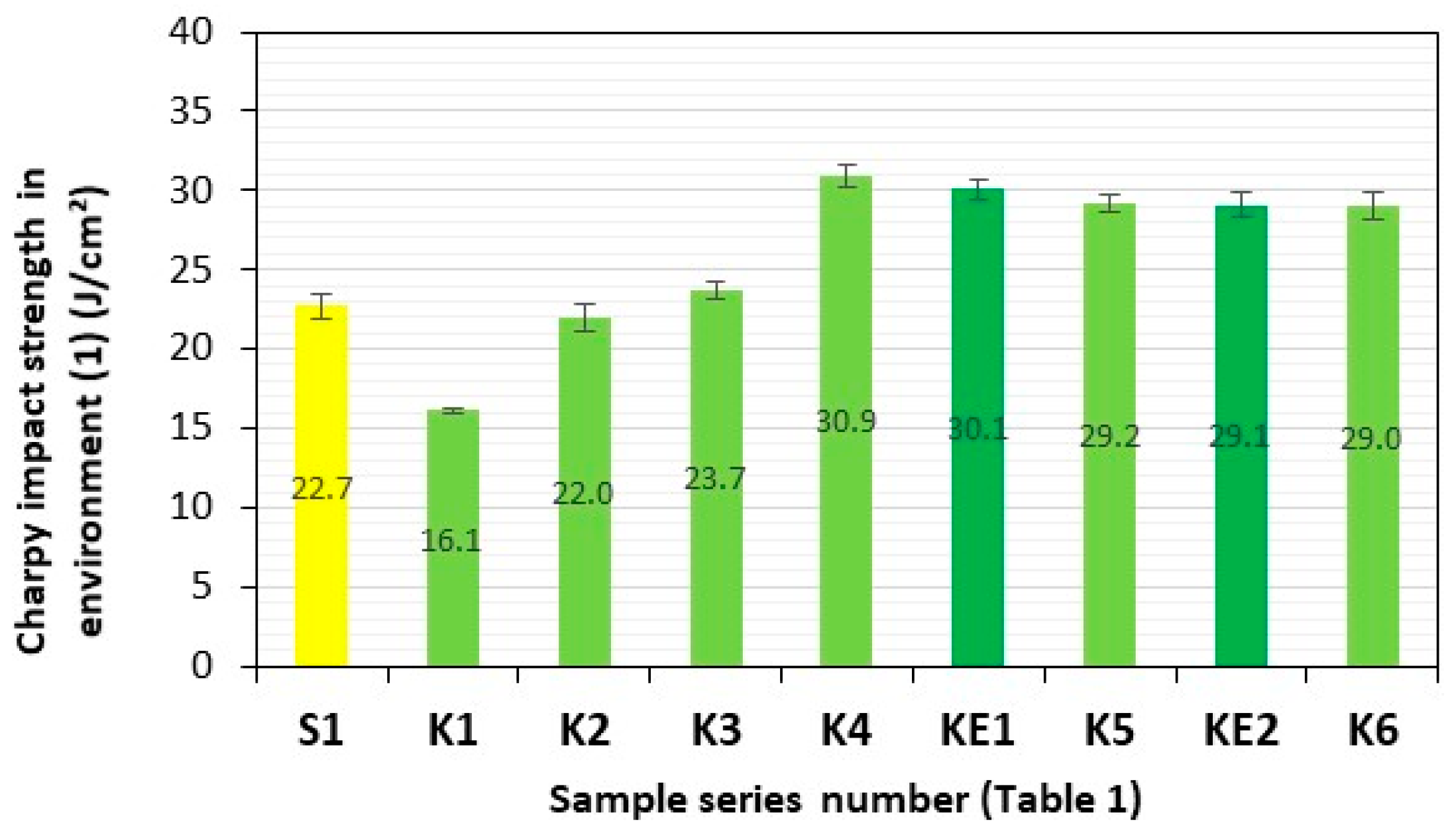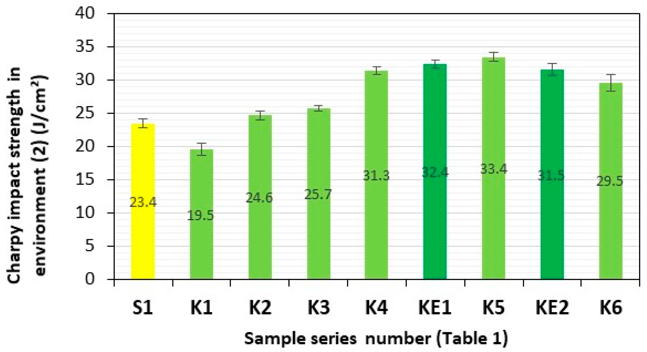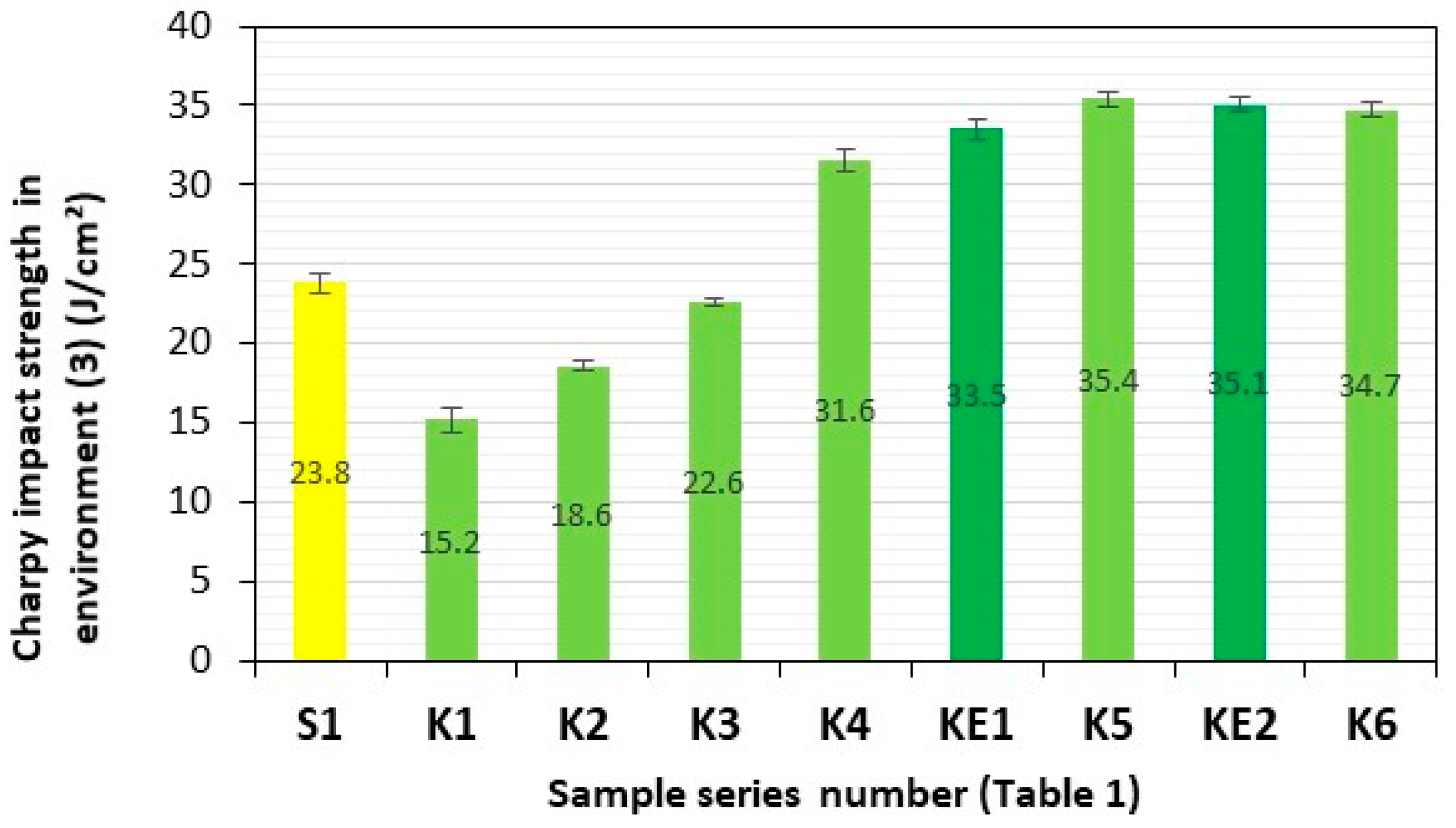 | • | Impact strength (Charpy method) of composite in environment (0) (air) | K6 and K5 |