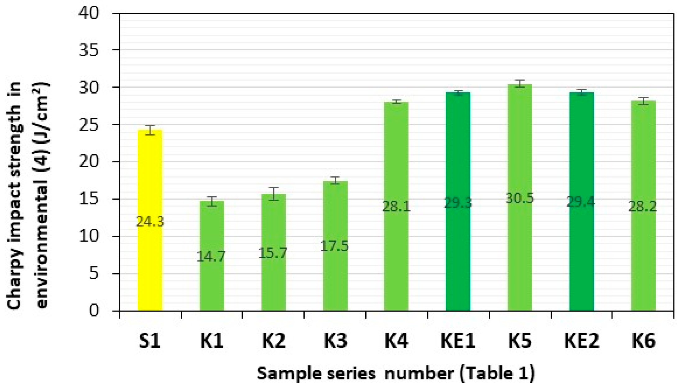 | • | Impact strength (Charpy method) of the composite in environment (4) (salt water (salinity 38‰—Adriatic Sea)) | K5 and K4 |