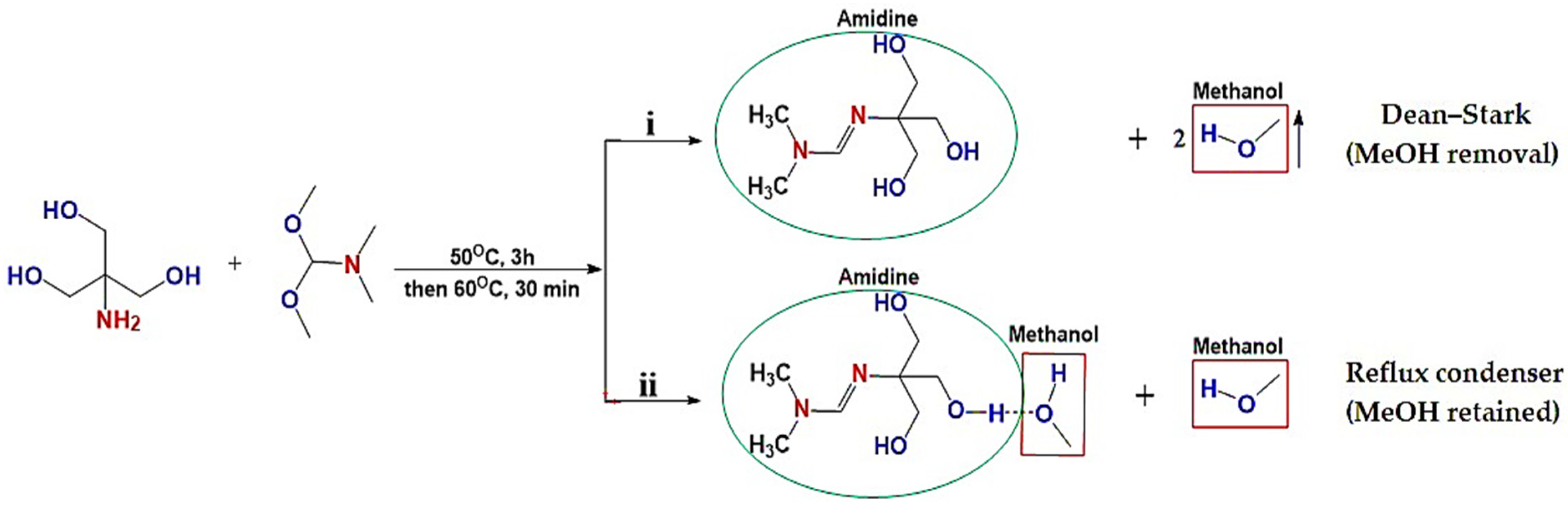 2.2.1. Preparation of Amidine (1a–b) with/Without Methanol Removal