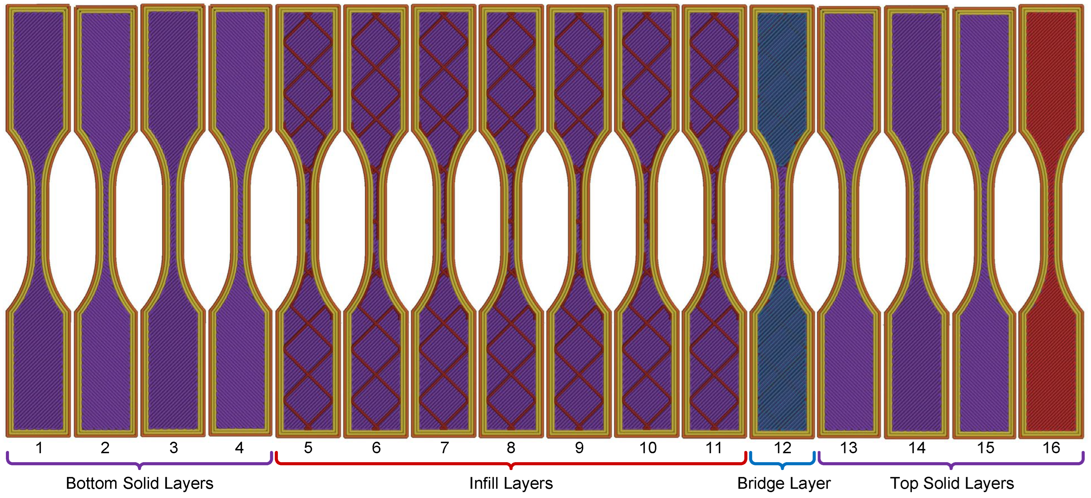 - Group B (Infill): Layers 5 through 11, which share identical infill patterns and densities.
