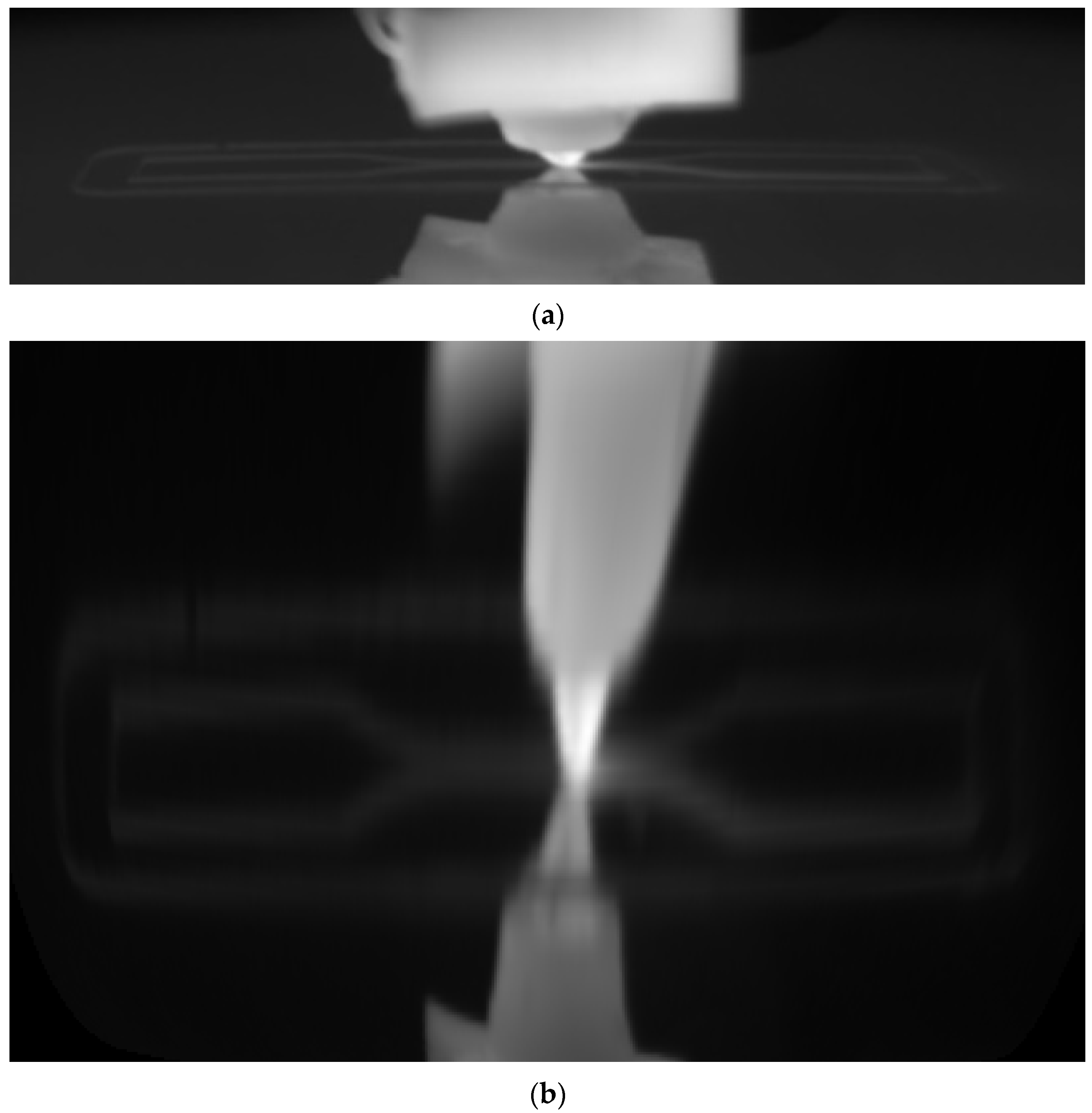 - Chen, S.; Yang, Y.; Liu, S.; Duan, M. In-Situ Additive Manufacturing Deposition Trajectory Monitoring and Compensation with Thermal Camera. Addit. Manuf. 2023, 78, 103820. [Google Scholar] [CrossRef]