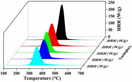 Thermal parameters measured by micro-cone calorimetry heat release rate curves (HRR).