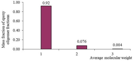 From Table 1, it is evident that as the average molecular weight increases, the mass fraction of epoxy groups decreases (Figure 1, Figure 2, Figure 3 and Figure 4), the epoxy equivalent rises, and viscosity and fraction content both increase. Thus, the selected epoxy oligomers differ significantly in properties and are suitable for further investigation.