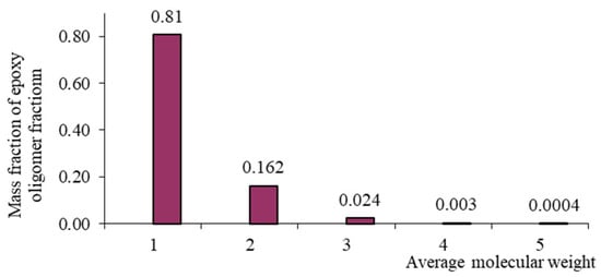 Each oligomeric fraction contributes to the total viscosity of the epoxy resin. According to [122,123,124,125,126], the fractional composition of commercial epoxy oligomers (including those used in this study) can be described by the Flory equation: