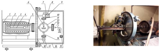The polymer samples were fixed in the clamps of a horizontal torsional pendulum (Figure 5) and subjected to torsional deformation following the application of an external impulse torque (Figure 6b) to the oscillatory system. The regime of external deformation is described by the relation: