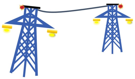 Overhead cables have become an integral part of urban and rural power grids, offering advantages such as no need for excavation, rapid installation, low investment costs, and convenient maintenance. They are particularly suitable for long-distance and large-span power transmission scenarios. To ensure the safe and reliable operation of transmission lines, their insulation materials must simultaneously possess excellent heat resistance, dielectric properties, and mechanical strength [1,2,3,4,5]. Cross-linked polyethylene (XLPE) has been the mainstream insulation choice for high-voltage overhead cables since the 1970s due to its high heat resistance grade and high breakdown strength [6,7]. However, the cross-linking process of XLPE is accompanied by by-products such as methane and requires vulcanization under high-temperature and high-pressure conditions, resulting in high energy consumption and long production equipment requirements. The three-dimensional thermosetting network formed after cross-linking prevents retired cables from being remelted and granulated for recycling; they can only be disposed of through incineration or landfilling. This not only wastes petrochemical resources but also emits carbon dioxide and toxic flue gases, which is contrary to the development direction of the circular economy under the “dual carbon” goal [8,9,10]. In addition, XLPE has a high density of up to 0.93 g/cm3, leading to excessive insulation weight of 10 kV cables over a kilometer scale. This causes a simultaneous increase in sag and tower load (as shown in Figure 1), becoming a technical bottleneck in long-span and large-crossing projects. Therefore, the development of new lightweight thermoplastic recyclable insulation materials has become a top priority for the green upgrading of overhead cables [11,12].
