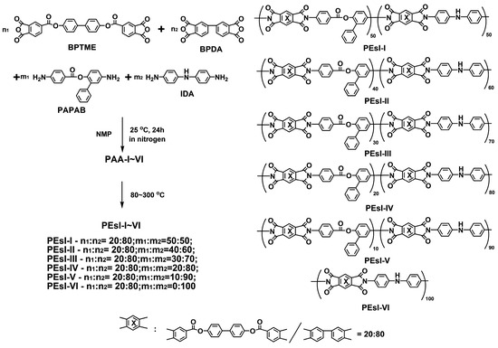 The other PAA and the corresponding PEsI films were prepared with similar procedures like PAA-I and PEsI-I, respectively.