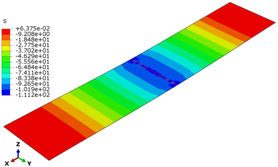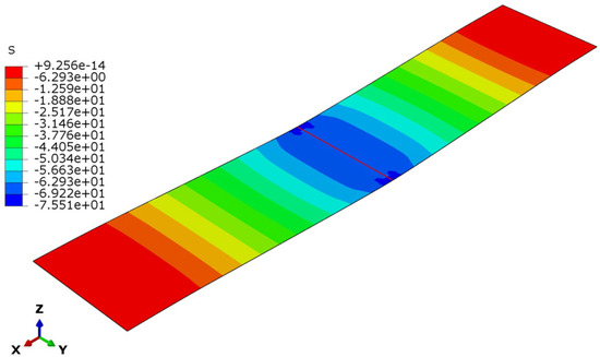 Additionally, the same experimental test specimens (see Figure 6) were modeled numerically in terms of dimensions, materials, boundary conditions and loading conditions. Consequently, the maximum sandwich deflection and maximum face sheet stresses were extracted from the FEM results.
