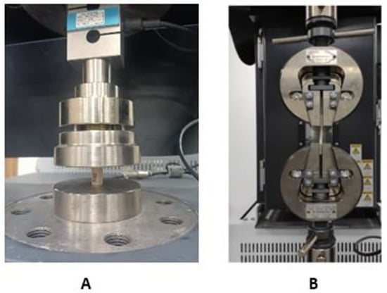 Figure 5 shows the specimens placed in the respective fixing systems for carrying out the corresponding destructive tests.