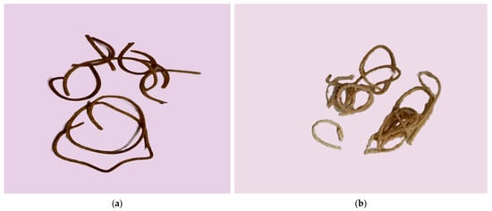 An alternative to remediate the above-mentioned problems is to employ natural polymers. It has been shown that natural polymers (like starch, alginate, etc.) can be used for biodegradable plastic bag manufacturing []. Starch can be efficiently recovered from agricultural residues, agricultural by-products, or wastewater generated during food processing []. An example is the equipment designed to recuperate the starch contained in the water that is used in the technological flux of potato processing []. Starch can be included in the formulation of composites, especially for improving the tensile strength and thermal properties of final materials [,].