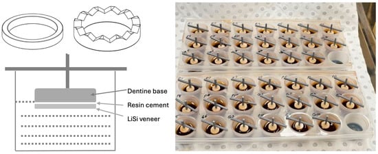 - Yli-Urpo, T.; Lassila, L.; Narhi, T.; Vallittu, P. Cement layer thickness and load-bearing capacity of tooth restored with lithium-disilicate glass ceramic and hybrid ceramic occlusal veneers. Dent. Mater. 2025, 41, 212–219. [Google Scholar] [CrossRef] [PubMed]