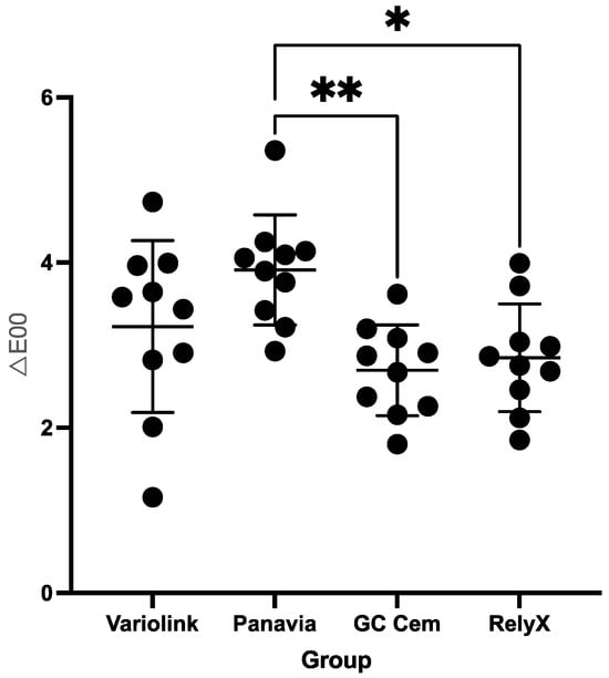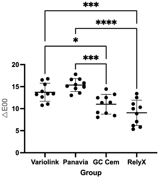 Chicago/Turabian StyleMiletic, Vesna, and Asana Pour Ronagh. 2025. "Staining Analysis of Resin Cements and Their Effects on Colour and Translucency Changes in Lithium Disilicate Veneers" Polymers 17, no. 3: 362. https://doi.org/10.3390/polym17030362